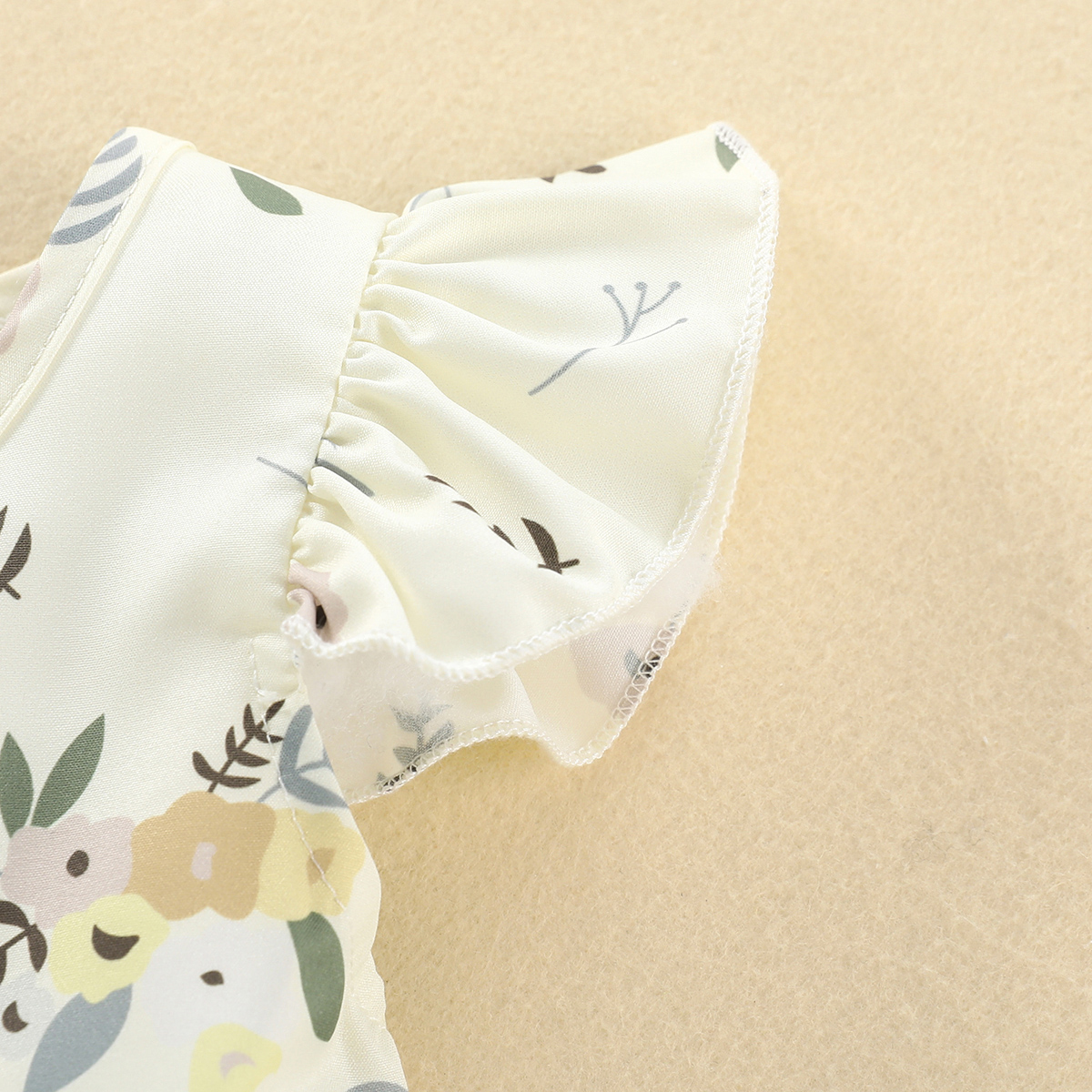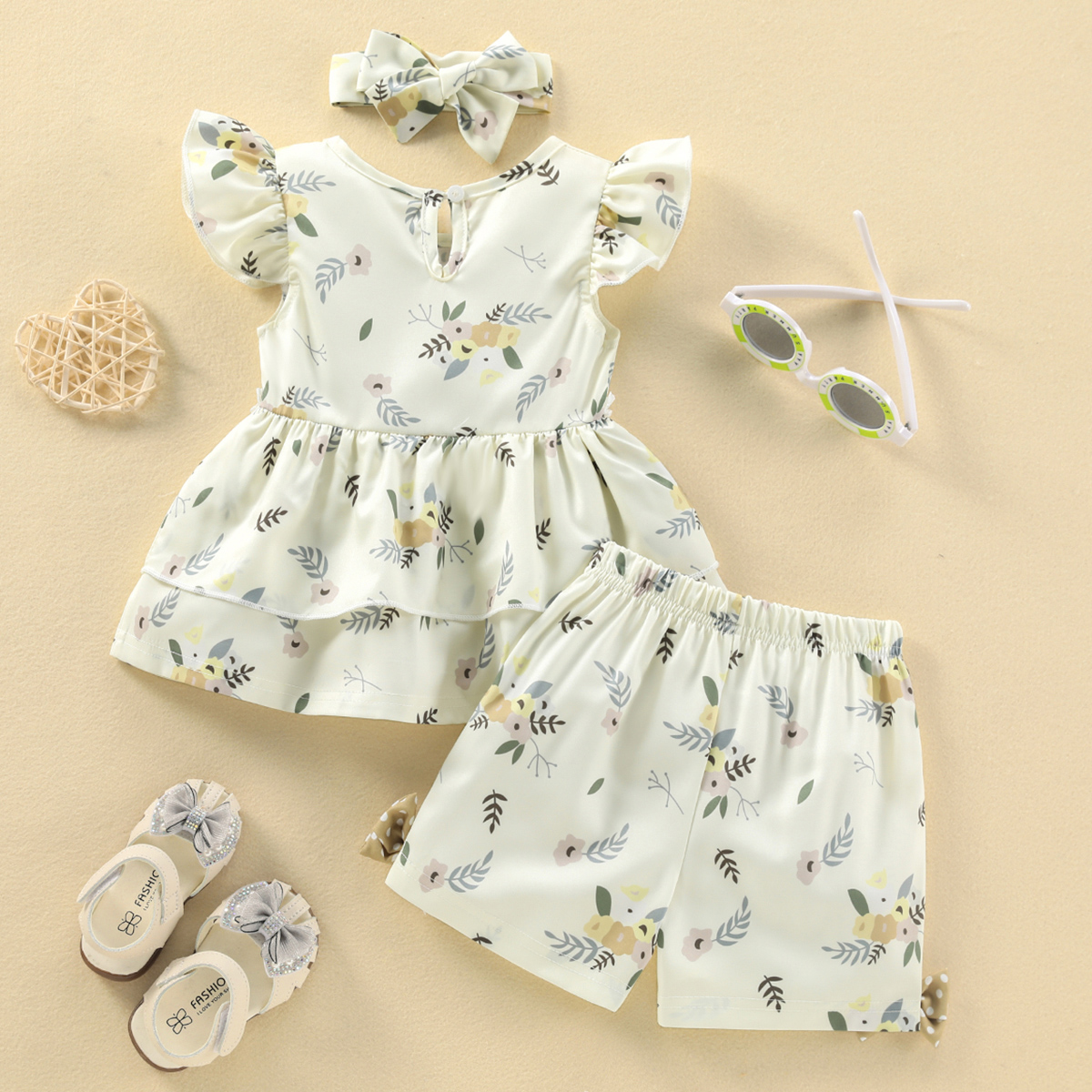 Baby Girl Beautiful Ruffle Sleeve Floral Top And Shorts with Headband Wholesale