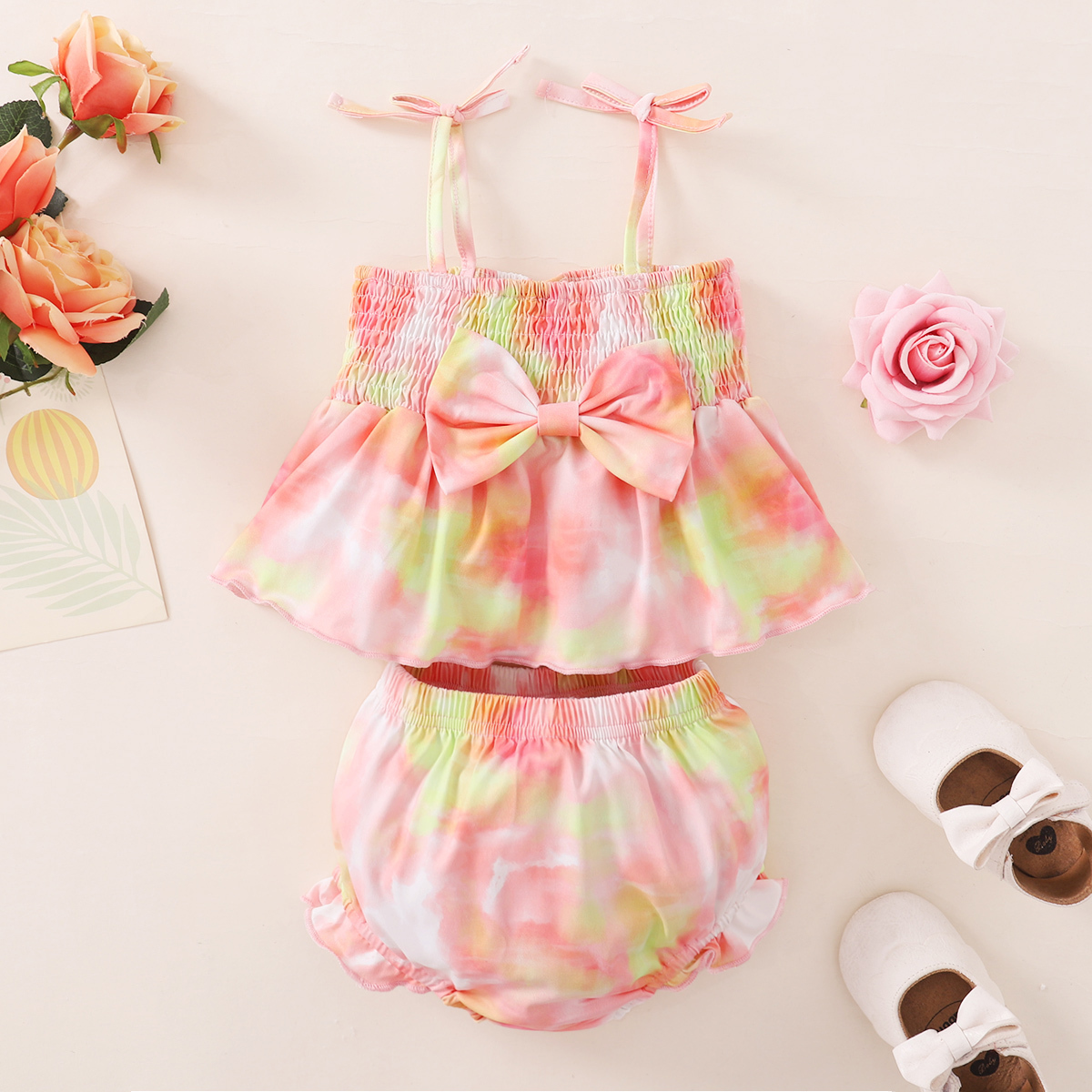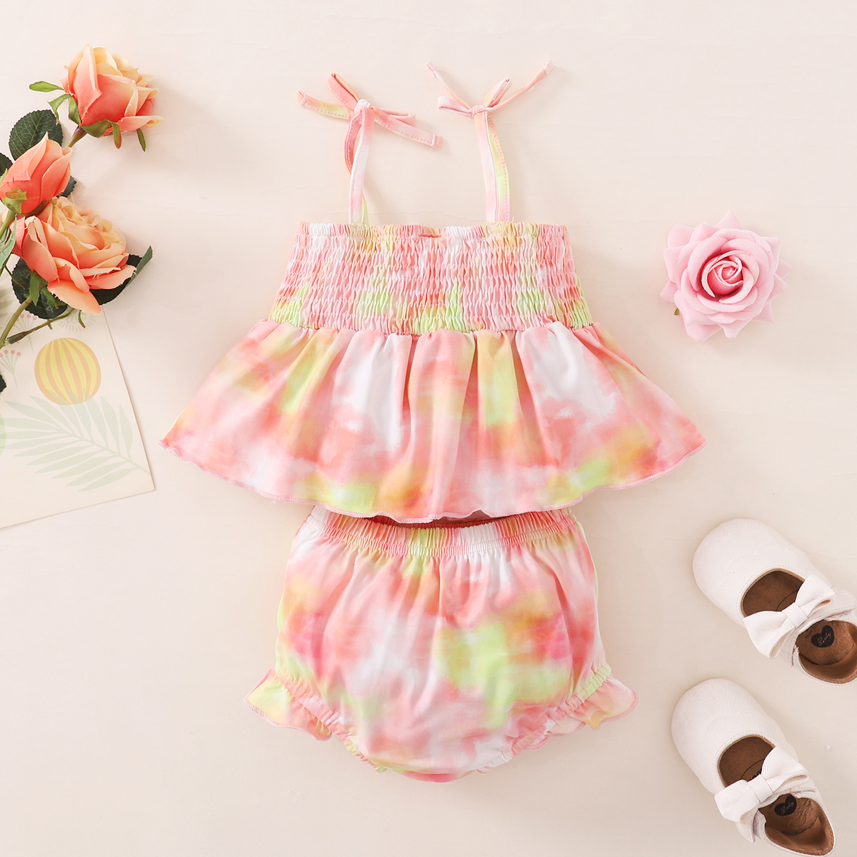 Baby Girl Beautiful Smocking Sleeveless Tie dye Top And Shorts Wholesale