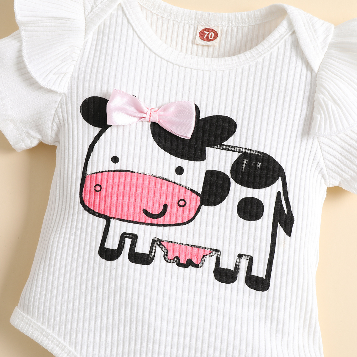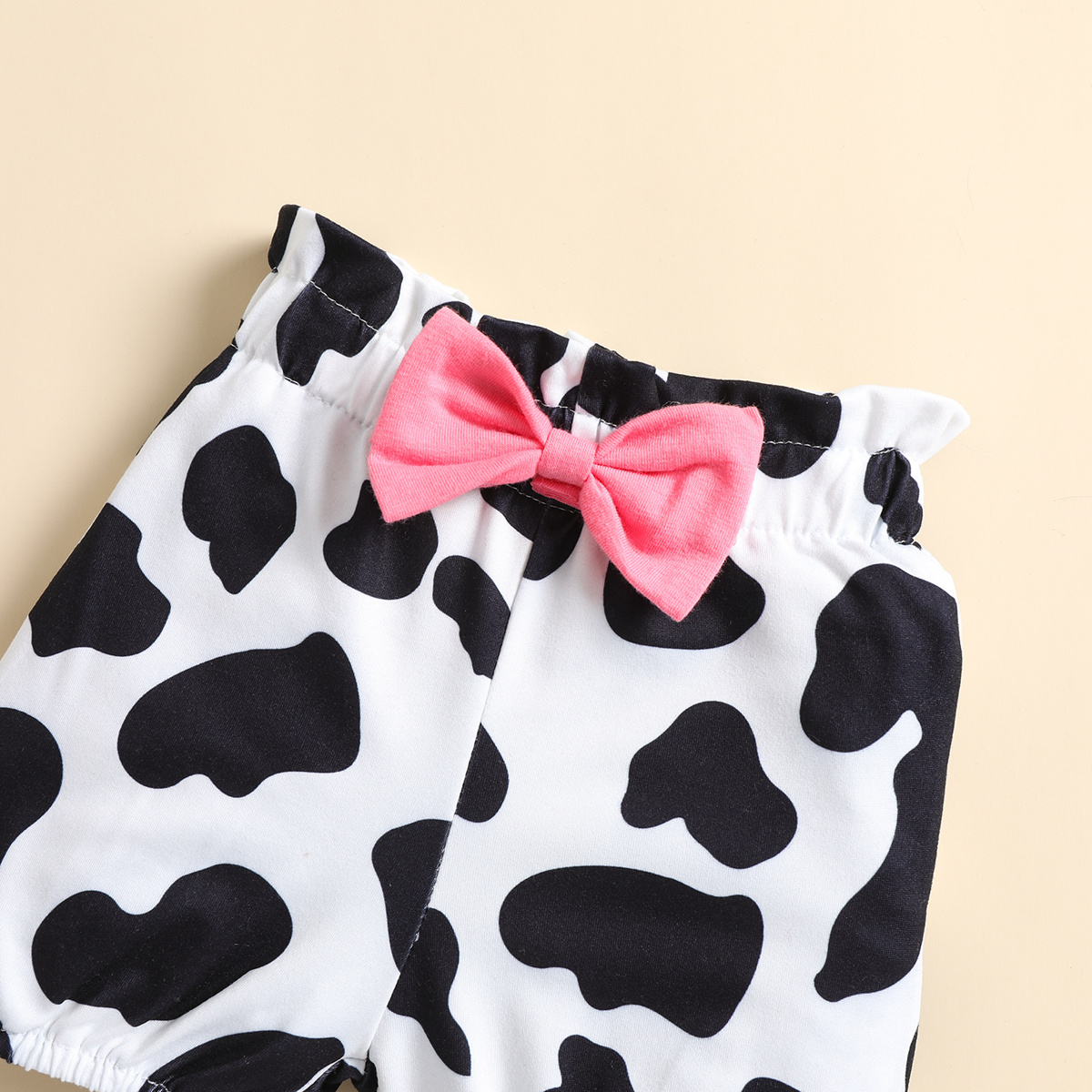 Baby Girl Eid al-Adha Milk Cow Pattern Bodysuit & Bow-knot Shorts Wholesale