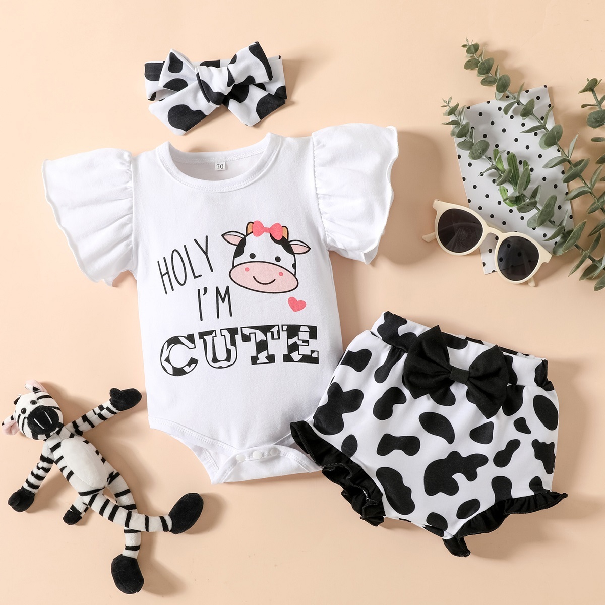 Baby Girl Eid al-Adha Milk Cow Pattern Bodysuit & Shorts & Headband Wholesale