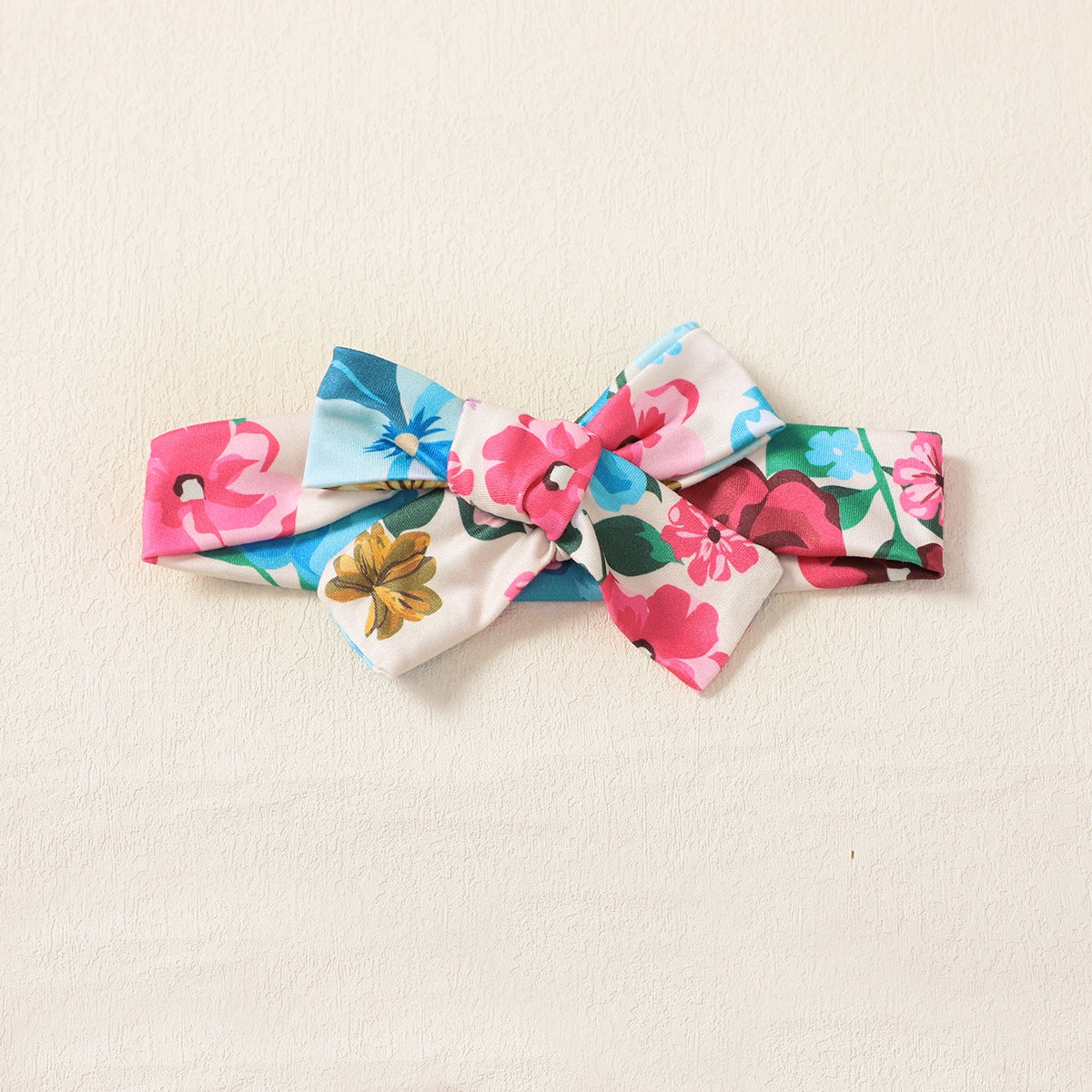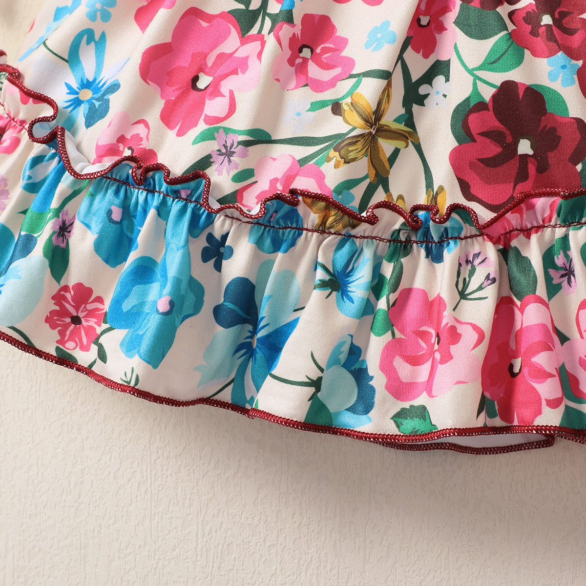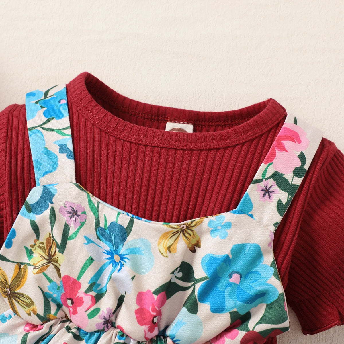 Baby Girl Fake Two Piece Patchwork Floral Print Dress with Headband Wholesale
