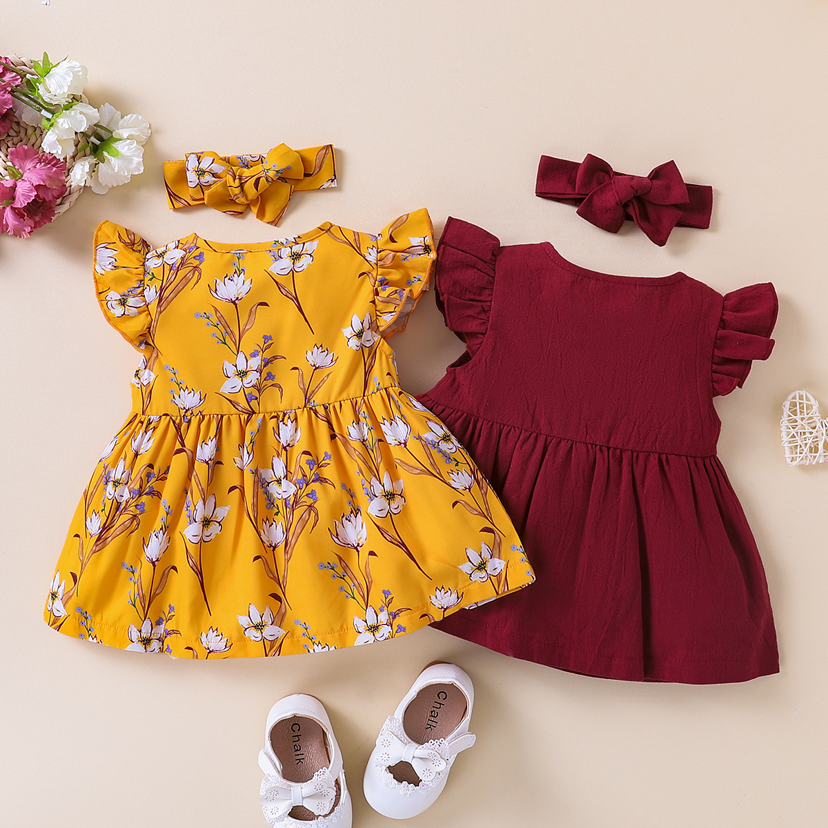 Baby Girl Floral Print Dress & Headband Wholesale