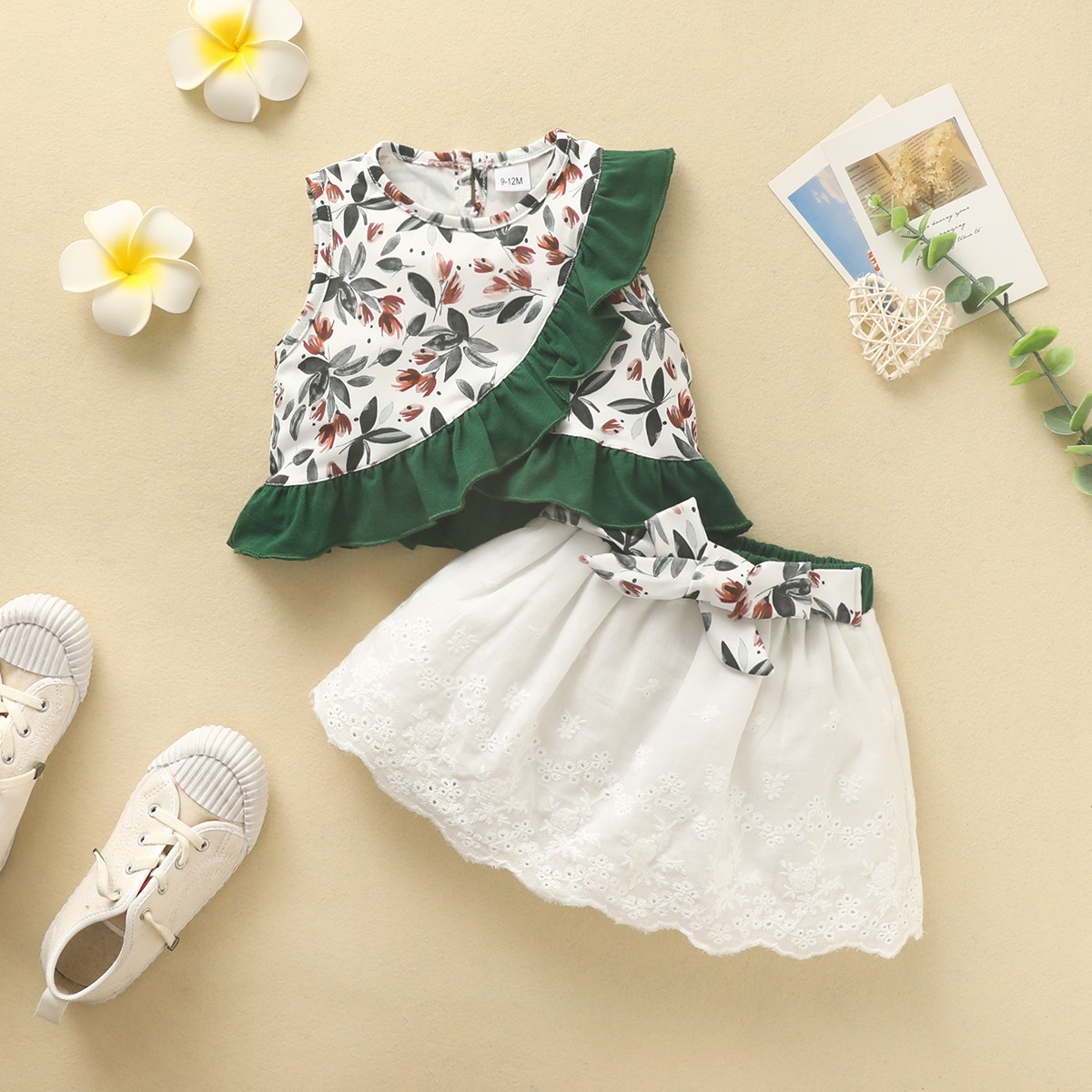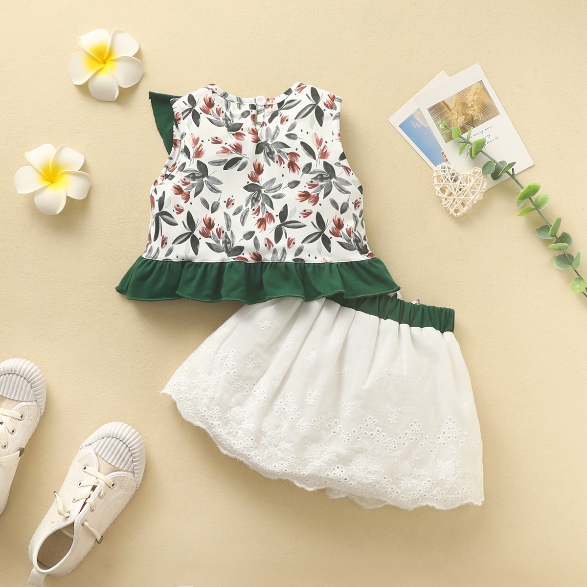 Baby Girl Floral Ruffle Top And Lace Solid Skirt Wholesale