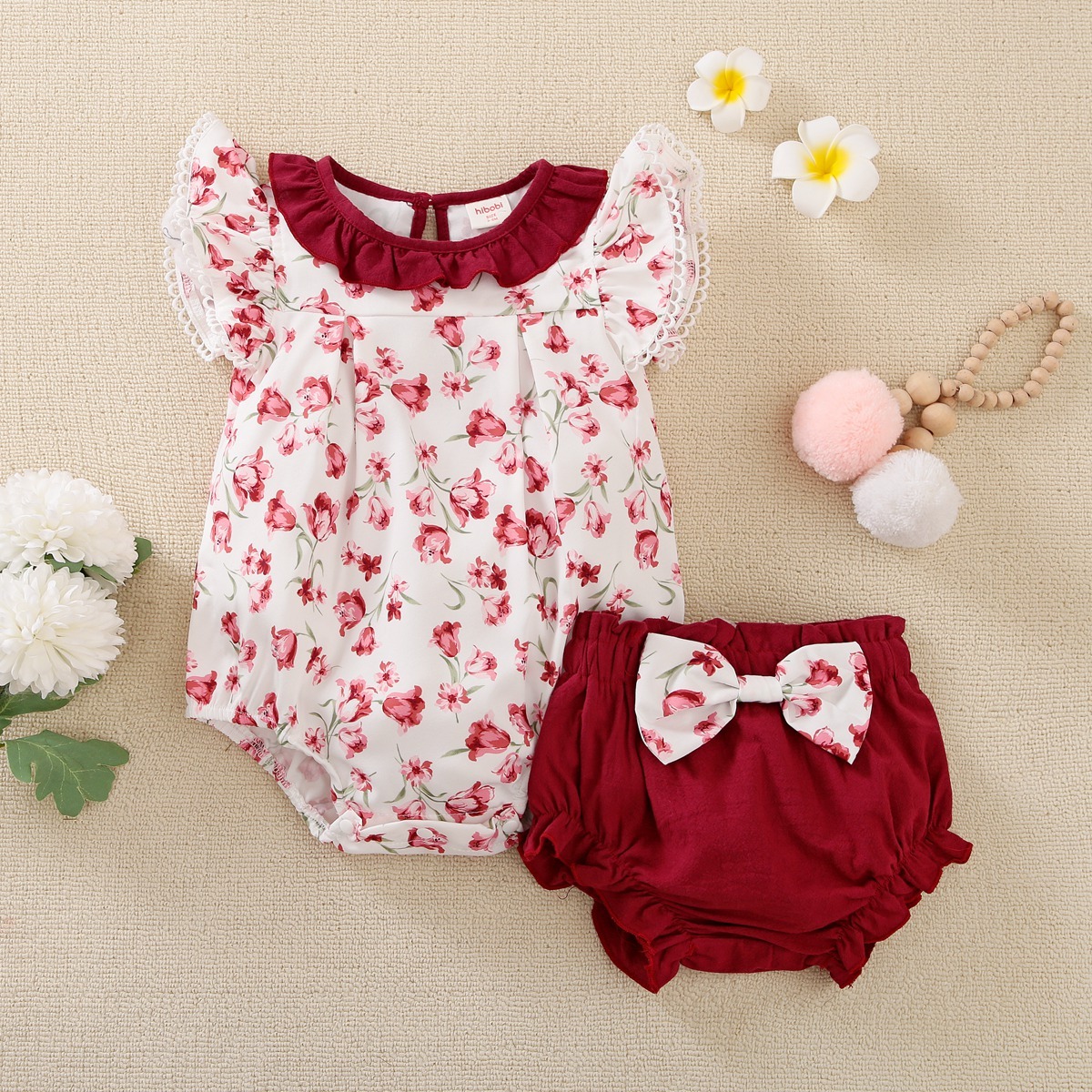 Baby Girl Floral Short Sleeve Jumpsuit & Shorts Wholesale