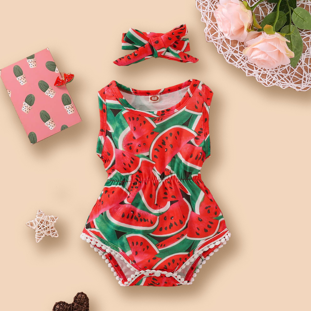Baby Girl Fruit Watermelon Bodysuit & Headband Wholesale