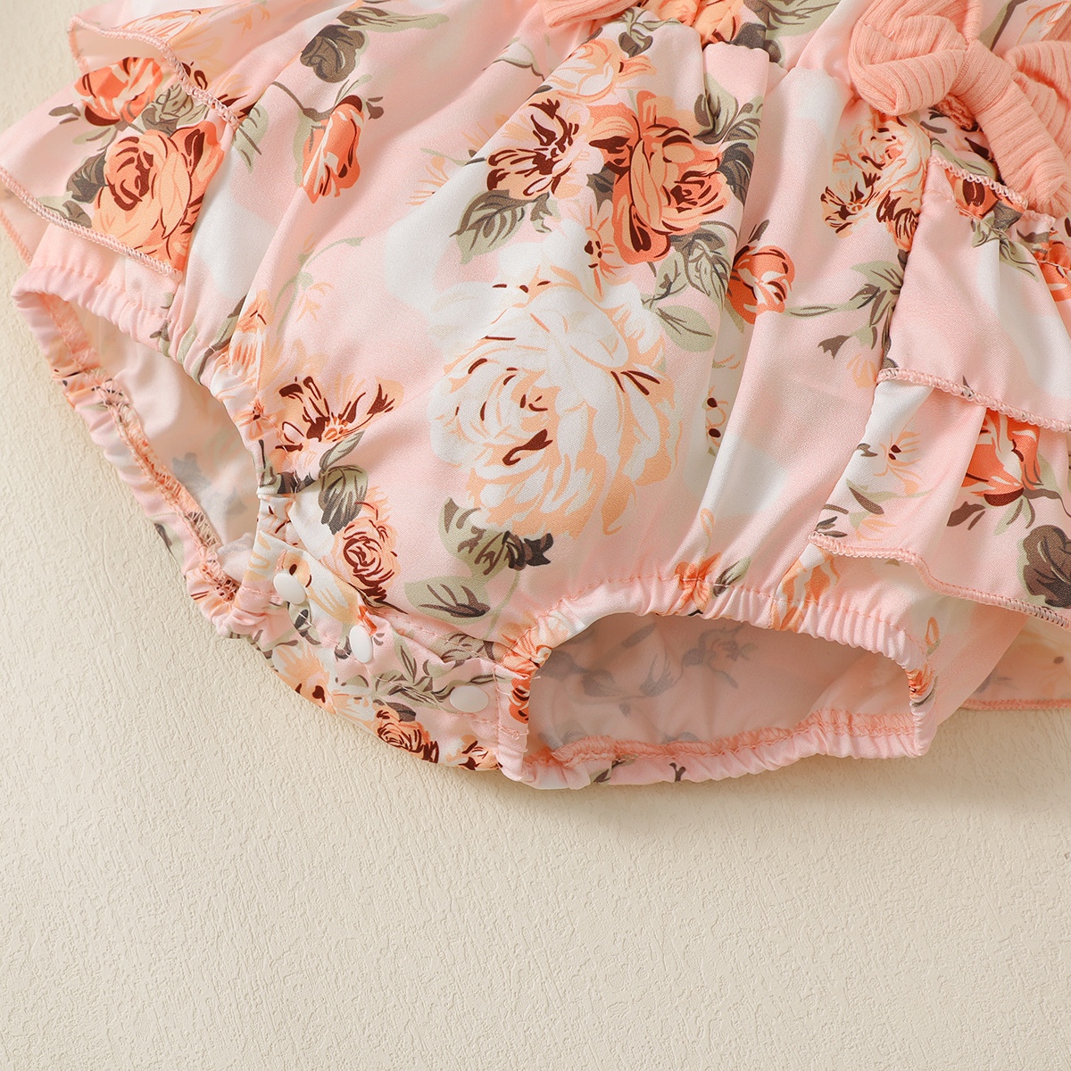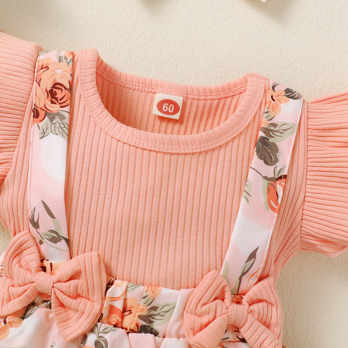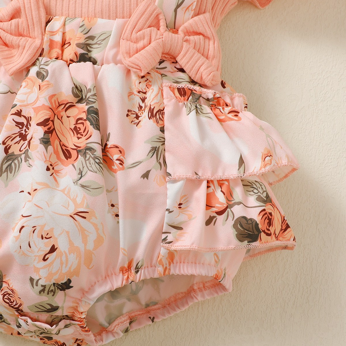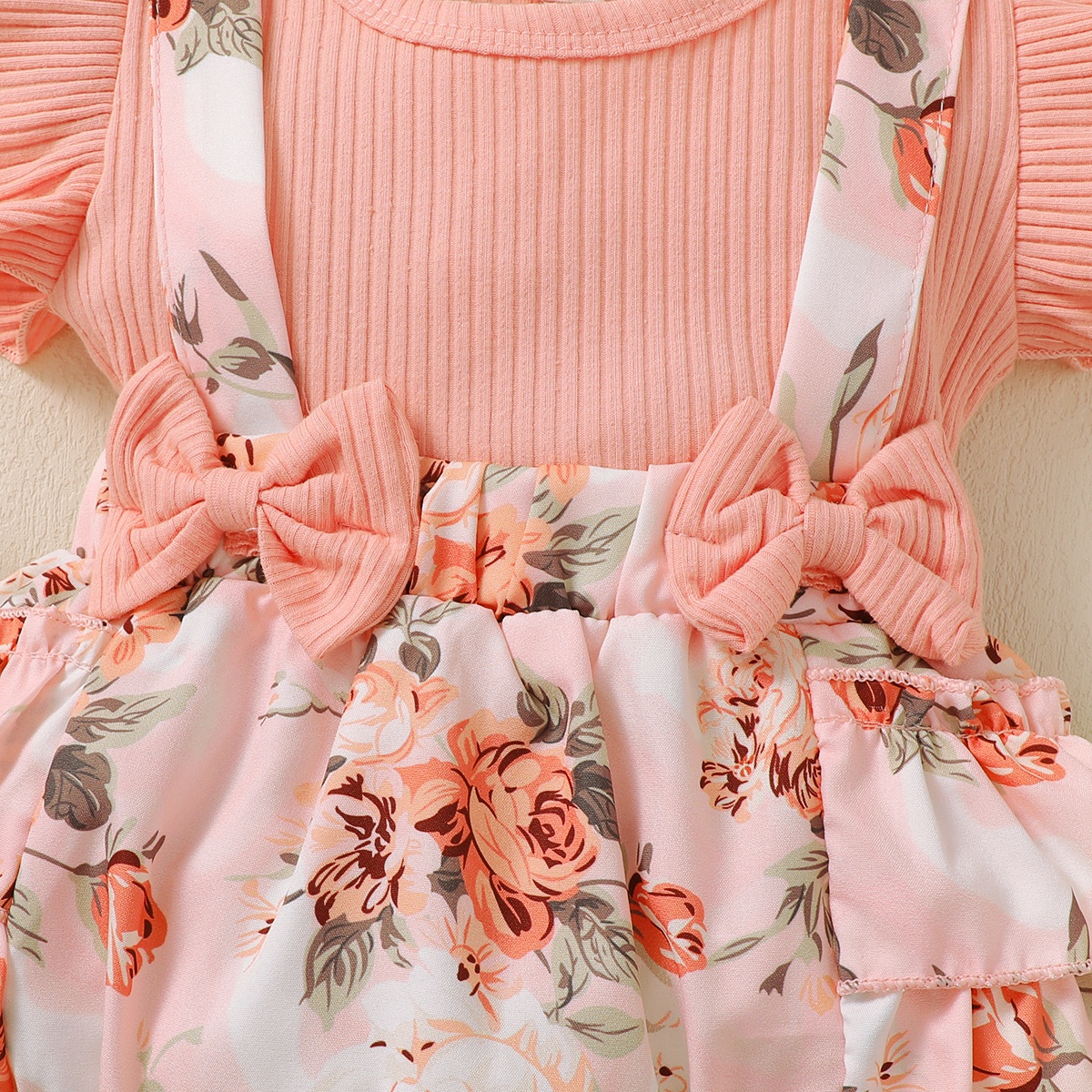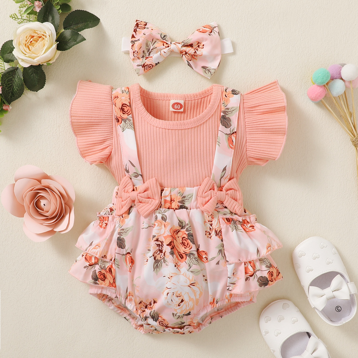Baby Girl Ruffle-sleeve Patchwork Floral Bowknot Bodysuit with Headband Wholesale