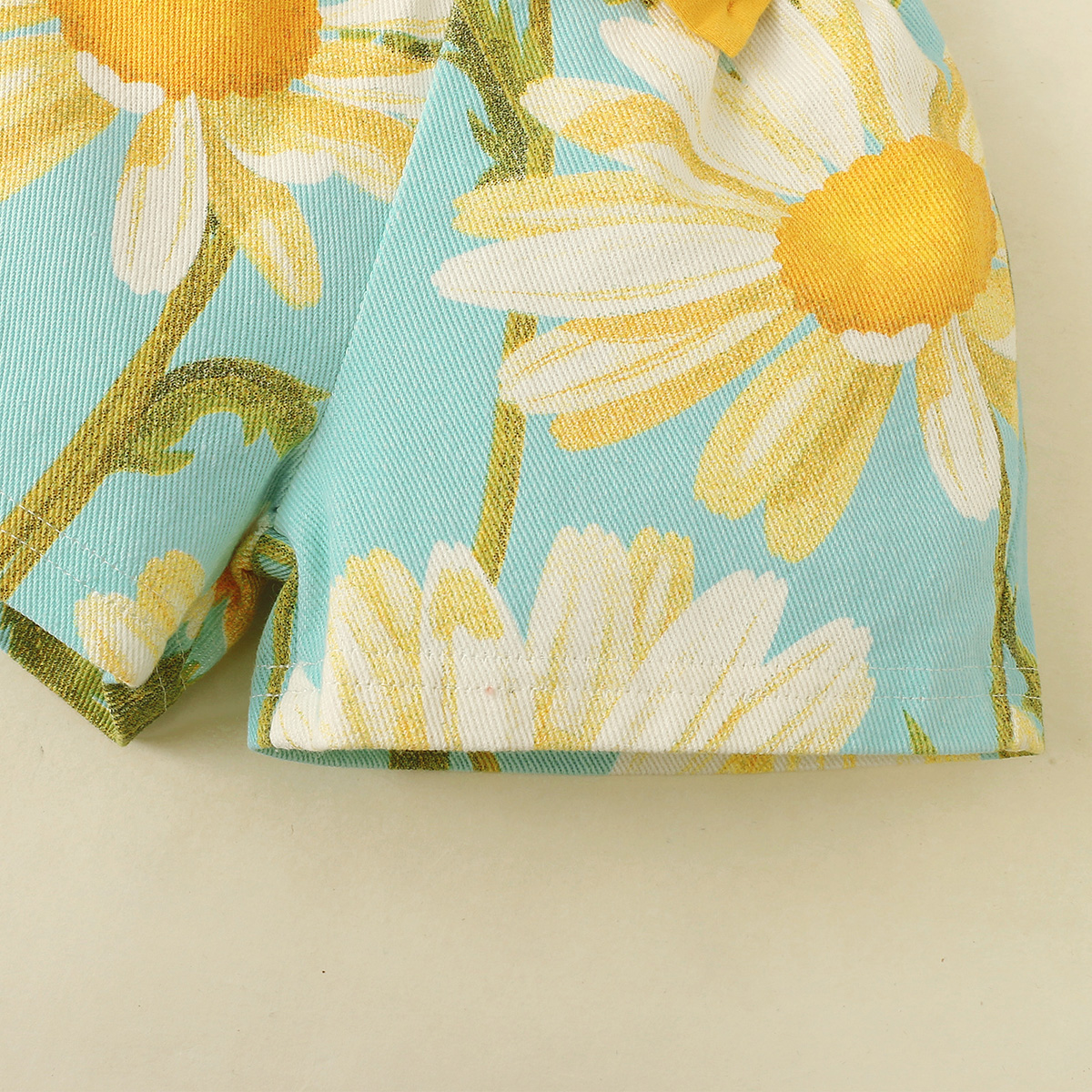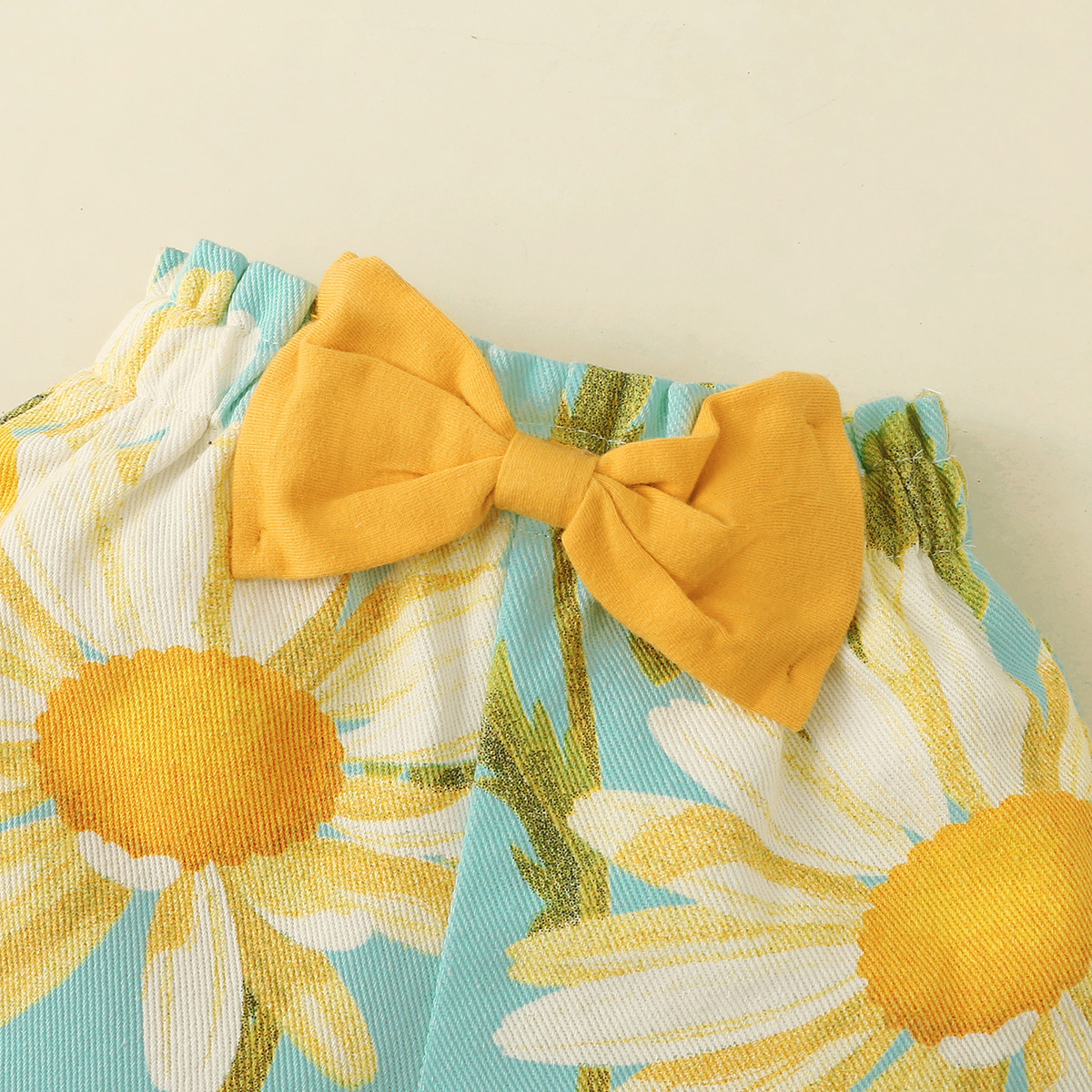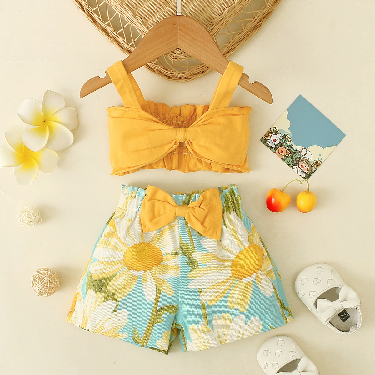 Baby Girl Sling Bowknot Top And Floral Print Shorts Wholesale