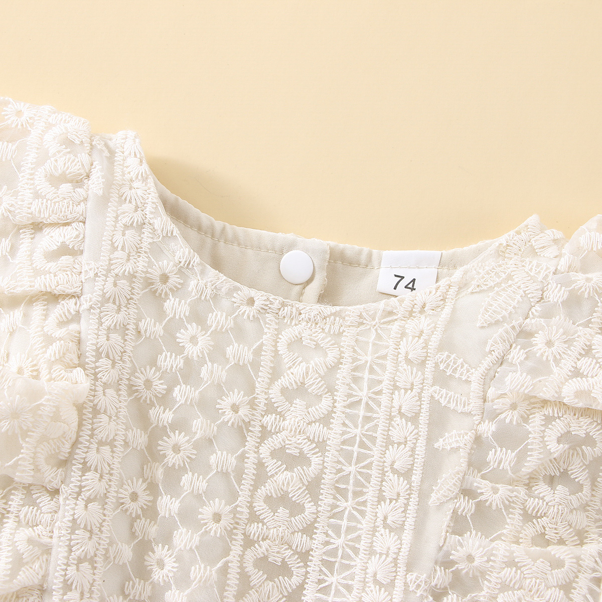 Baby Girl Solid Color Lace Floral Pattern Ruffle-sleeve Bodysuit Wholesale