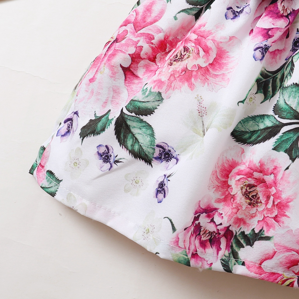 Baby Girl Solid Colour Ruffle-sleeve Patchwork Floral Bowknot Dress Wholesale