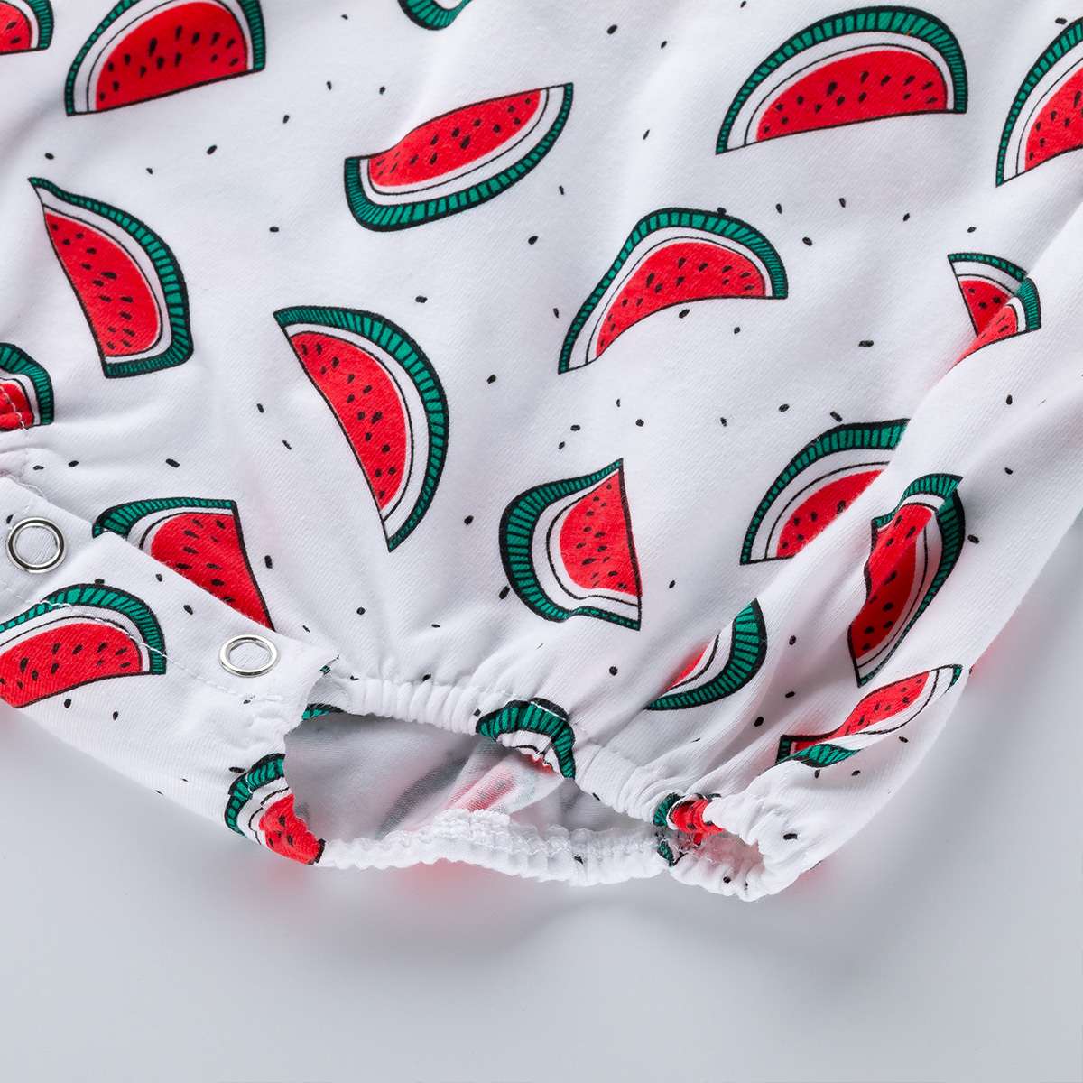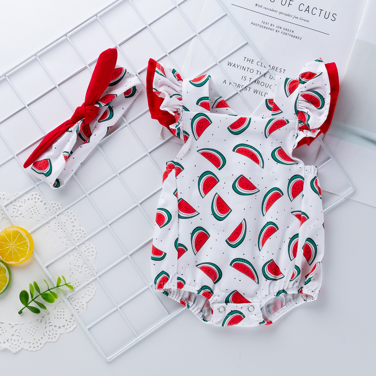 Baby Girl Watermelon Pattern Ruffle-sleeve Bodysuit & Headband Wholesale