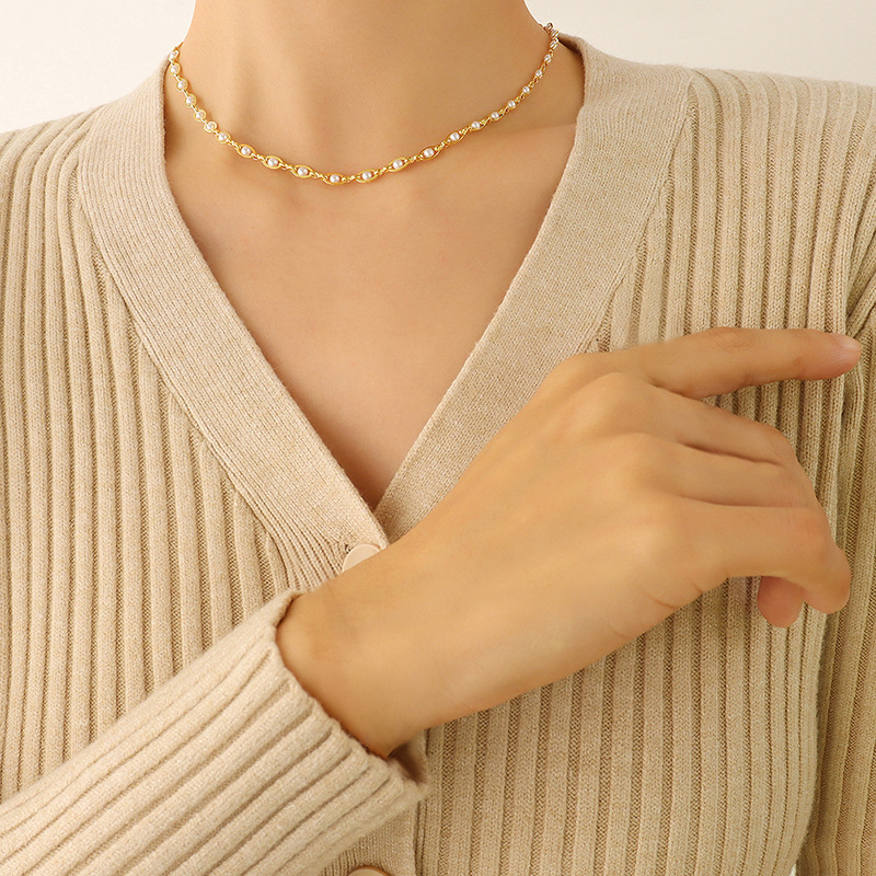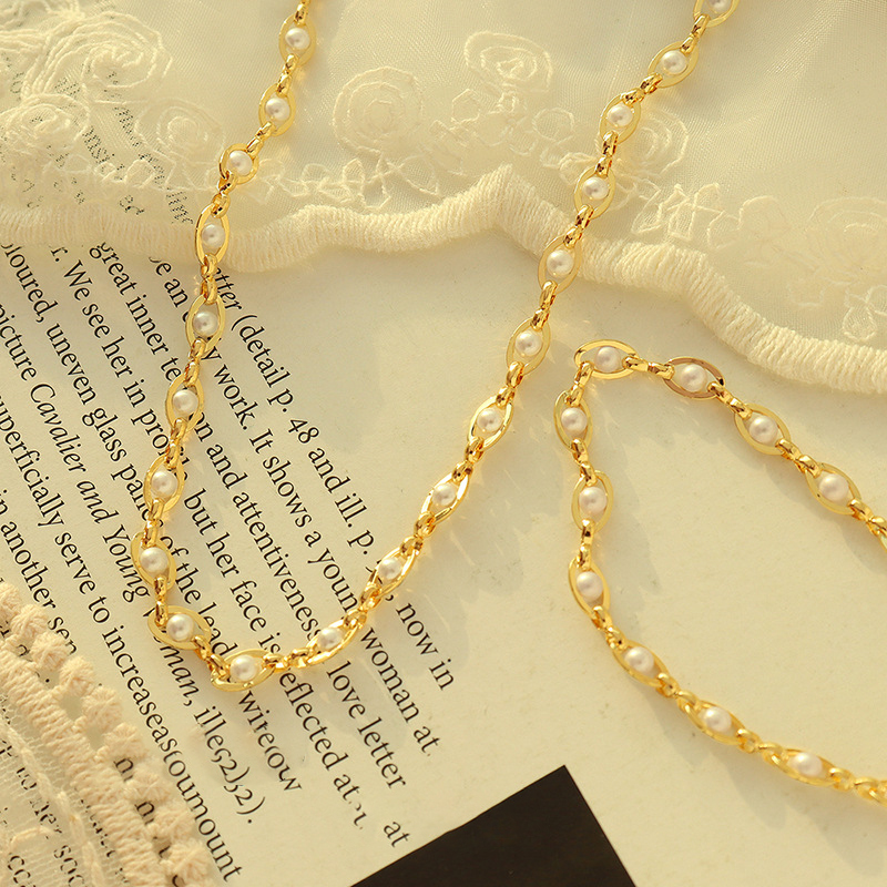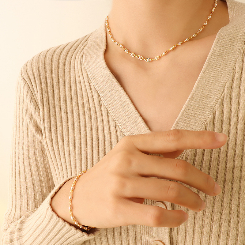 Baroque Style Dainty Pearl Necklace & Bracelet Set