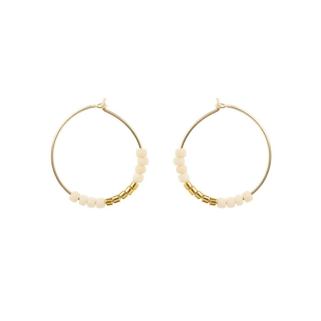 • These stunning and delicate Beaded Small Hoop Earrings_will complement any outfit. The 14k gold hoops are decorated with a mix of glass beads and 24k gold plated glass beads. Choose from blush pink or bold black for a night-to-day style. For an understated hoop, opt for these Tanzanian beauties_that will_be with you for life. _