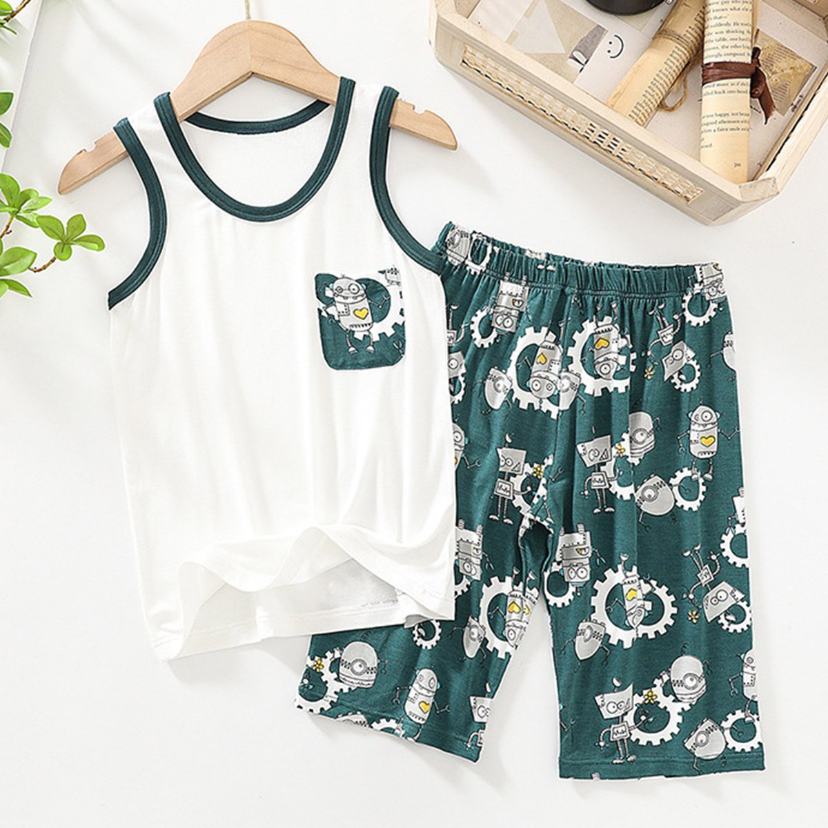 Boy Summer Cartoon Robot Color-block Modal Home Wear Set Wholesale