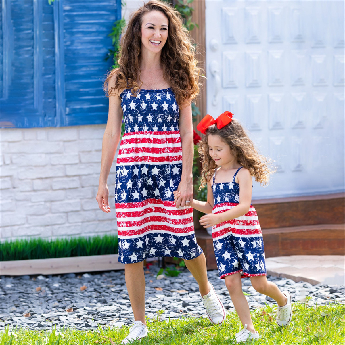 Causal Independence Day Pattern Print Sleeveless Dress for Mom and Me Wholesale