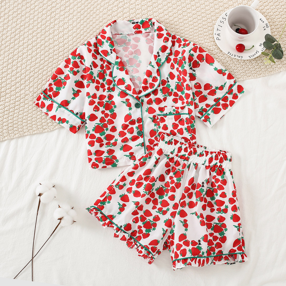 Children's Summer Strawberry Pattern Breathable Comfortable Home Set Wholesale