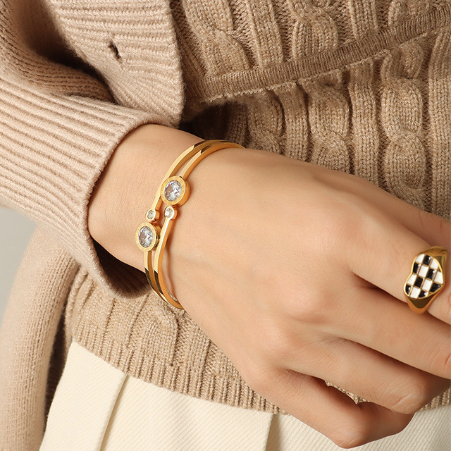 Diamonds Inlaid Spring Joint Bangle