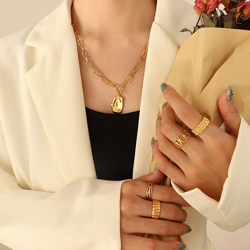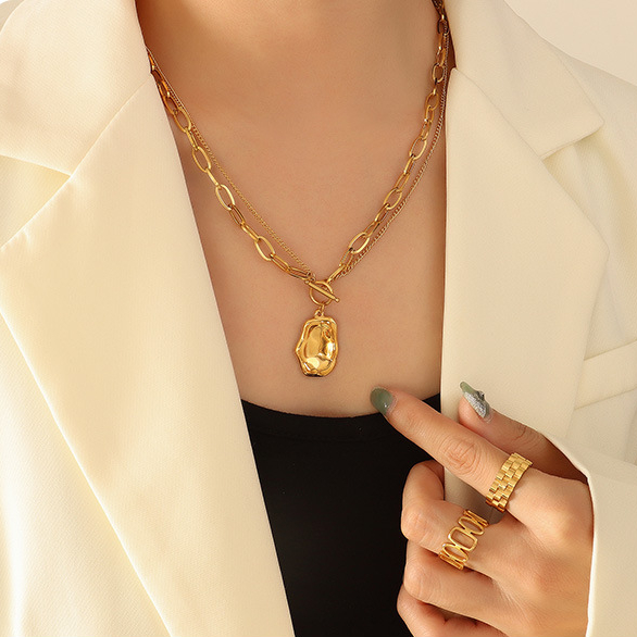 Double Layer Chain OT Buckle Irregular Shape Pendant Necklace