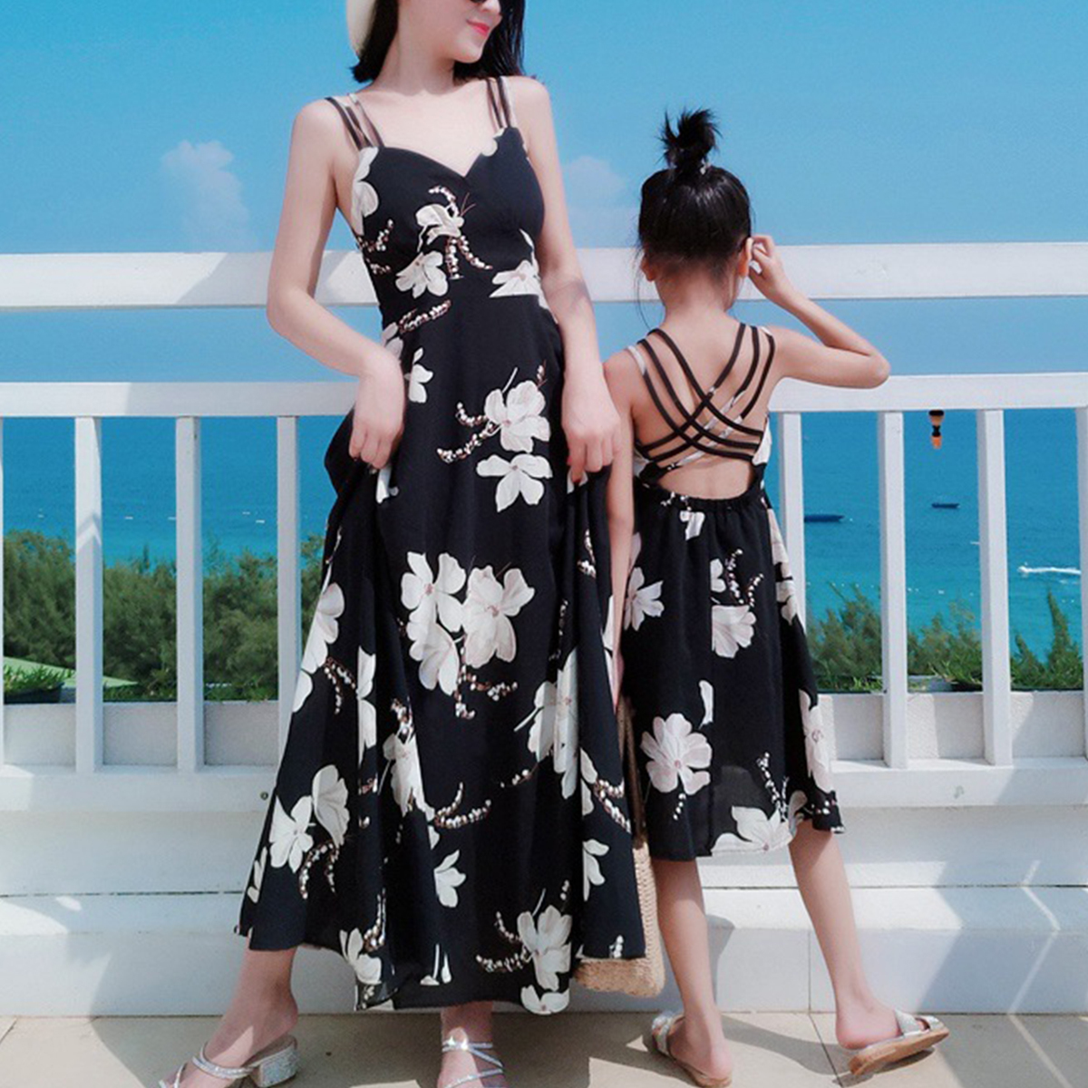 Elegant Floral Print Long Dress for Mom and Me Wholesale