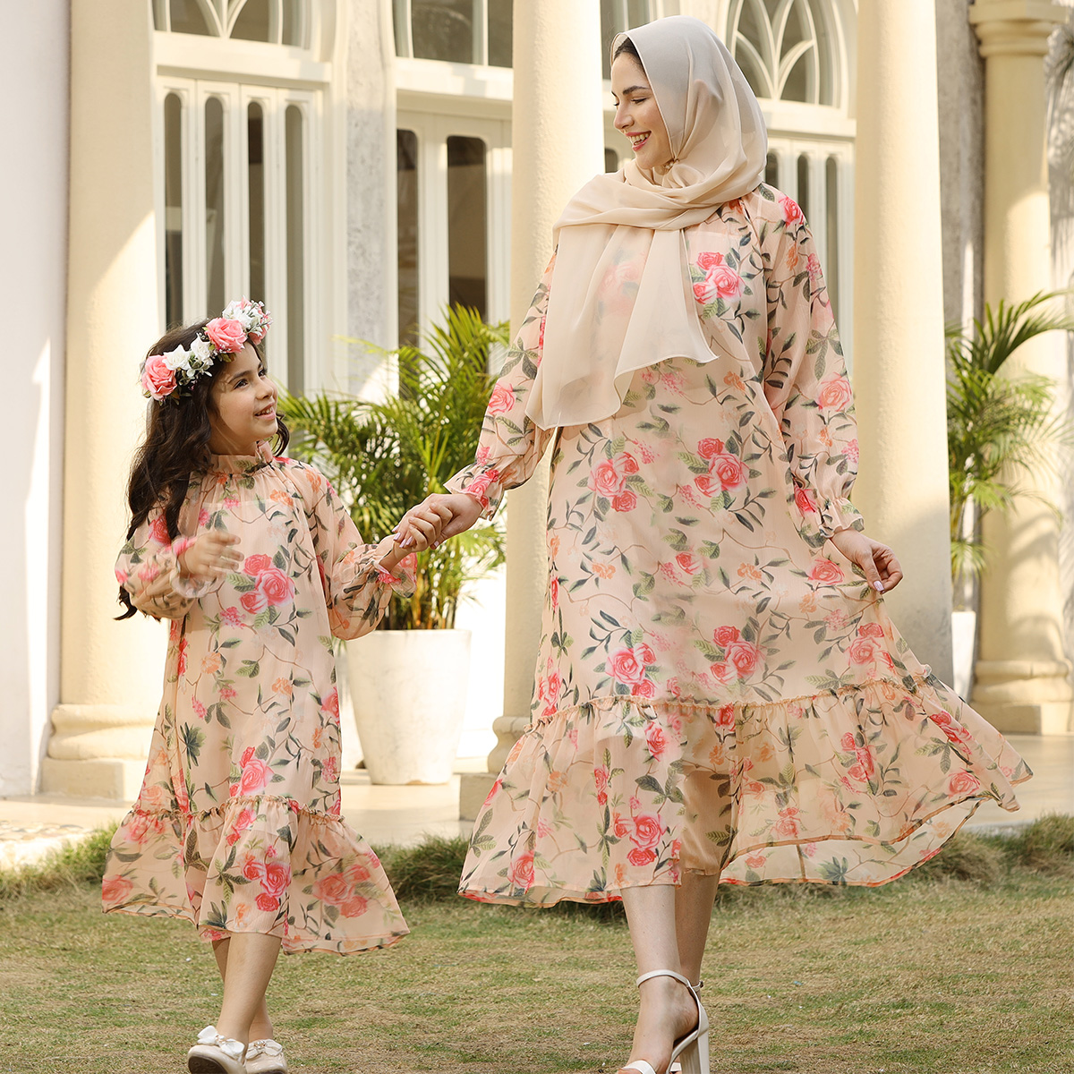 Elegant Floral Print Long Sleeve Dress for Mom and Me Wholesale