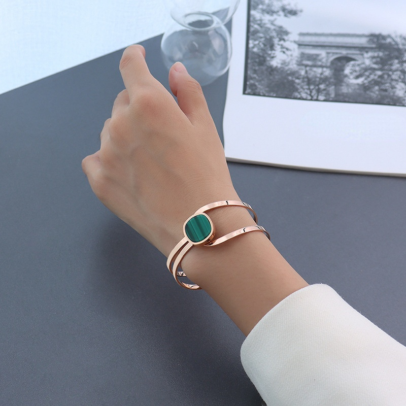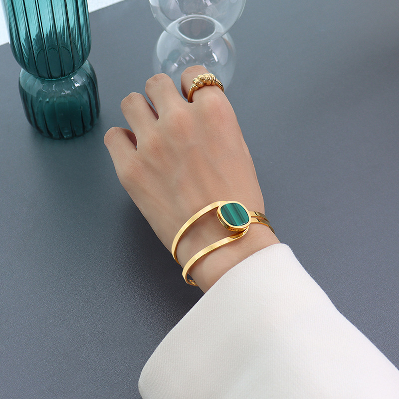 Emerald Color Surface With Stripes Asymmetric Bangle