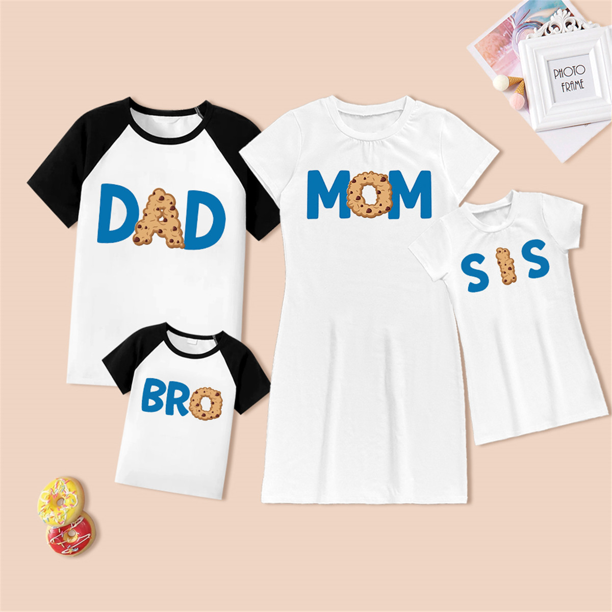 Family Matching Cartoon Pattern Print Dress and T-shirt Wholesale