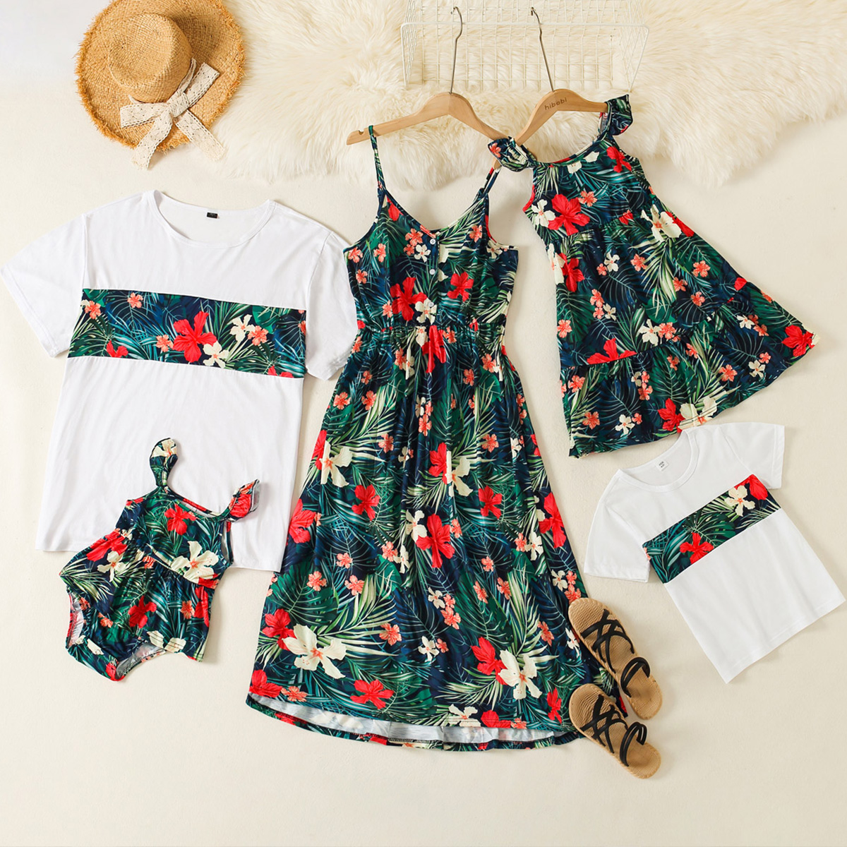 Family Matching Floral Print Sleeveless Dress and T-shirt Wholesale