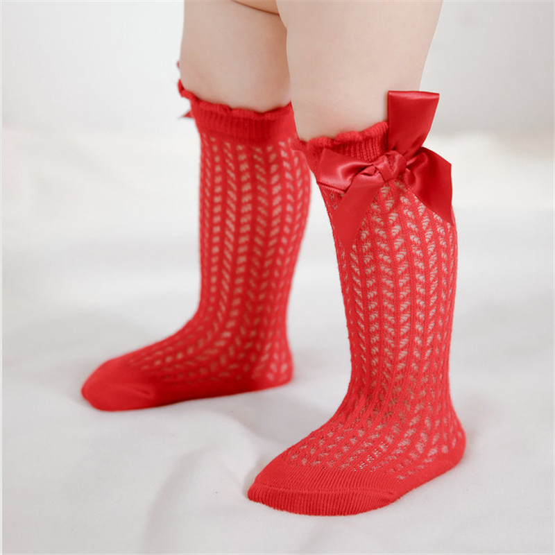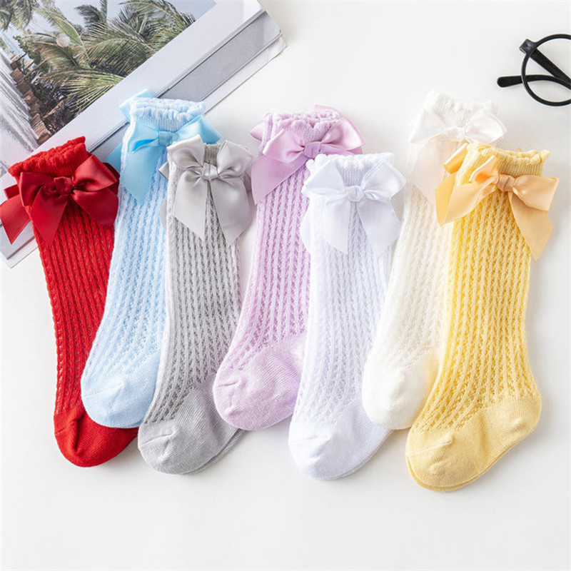 Girl Solid Color Bowknot Decor Mesh Socks Wholesale