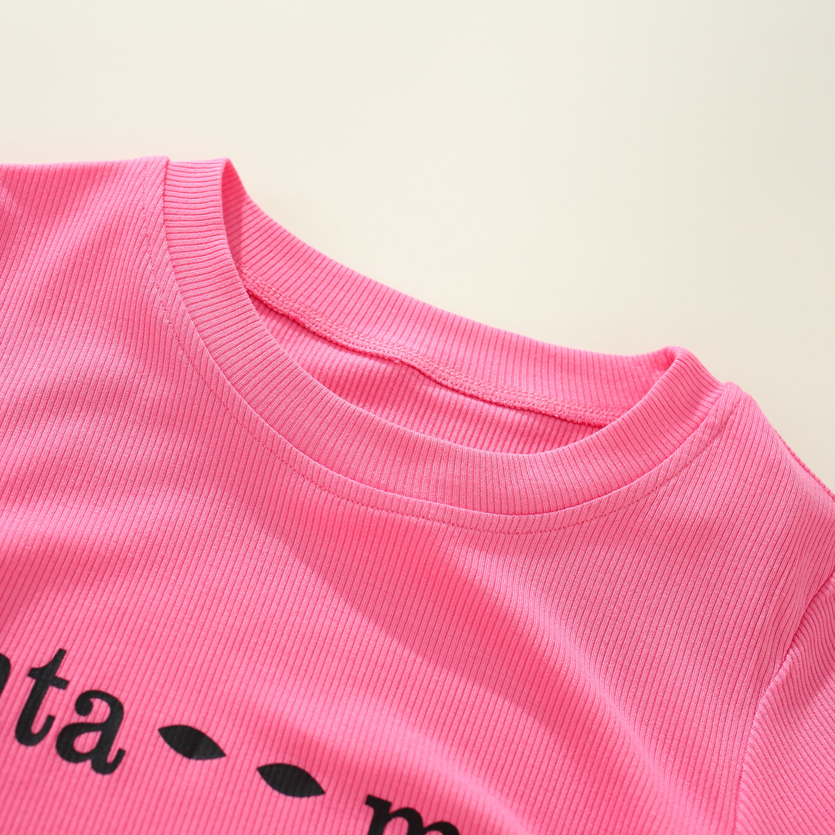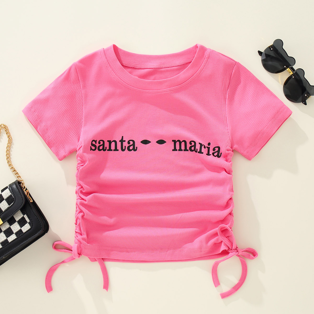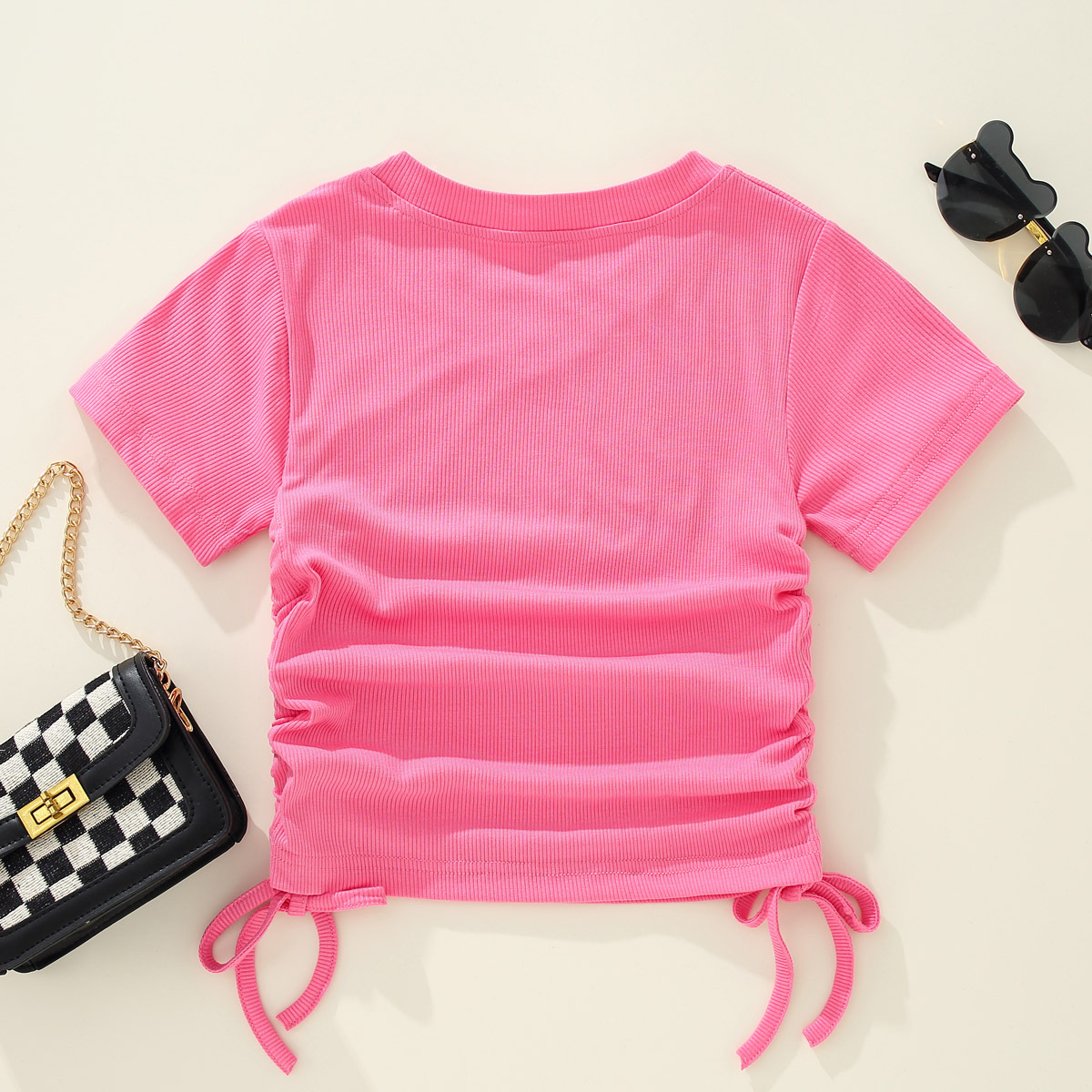 Girls Summer Fashion Cute Letter Print Drawstring T-shirt Wholesale