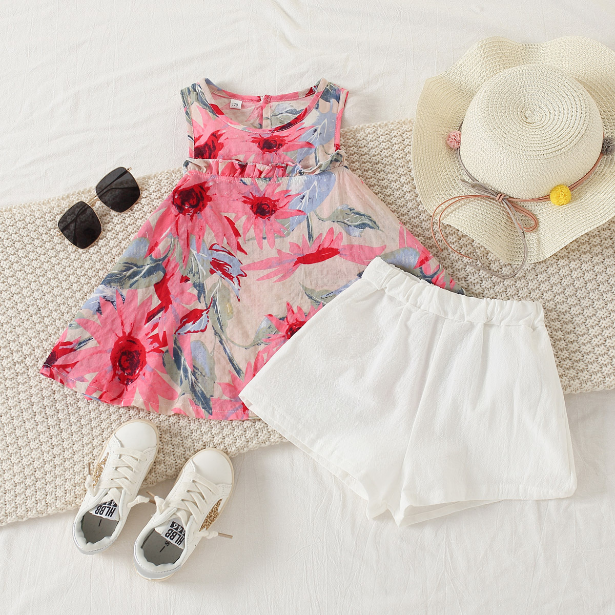 Girls Summer Sweet Cute Floral Sleeveless T-shirt & Shorts Wholesale