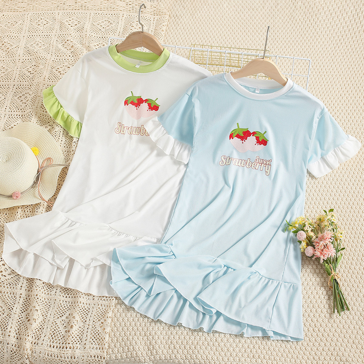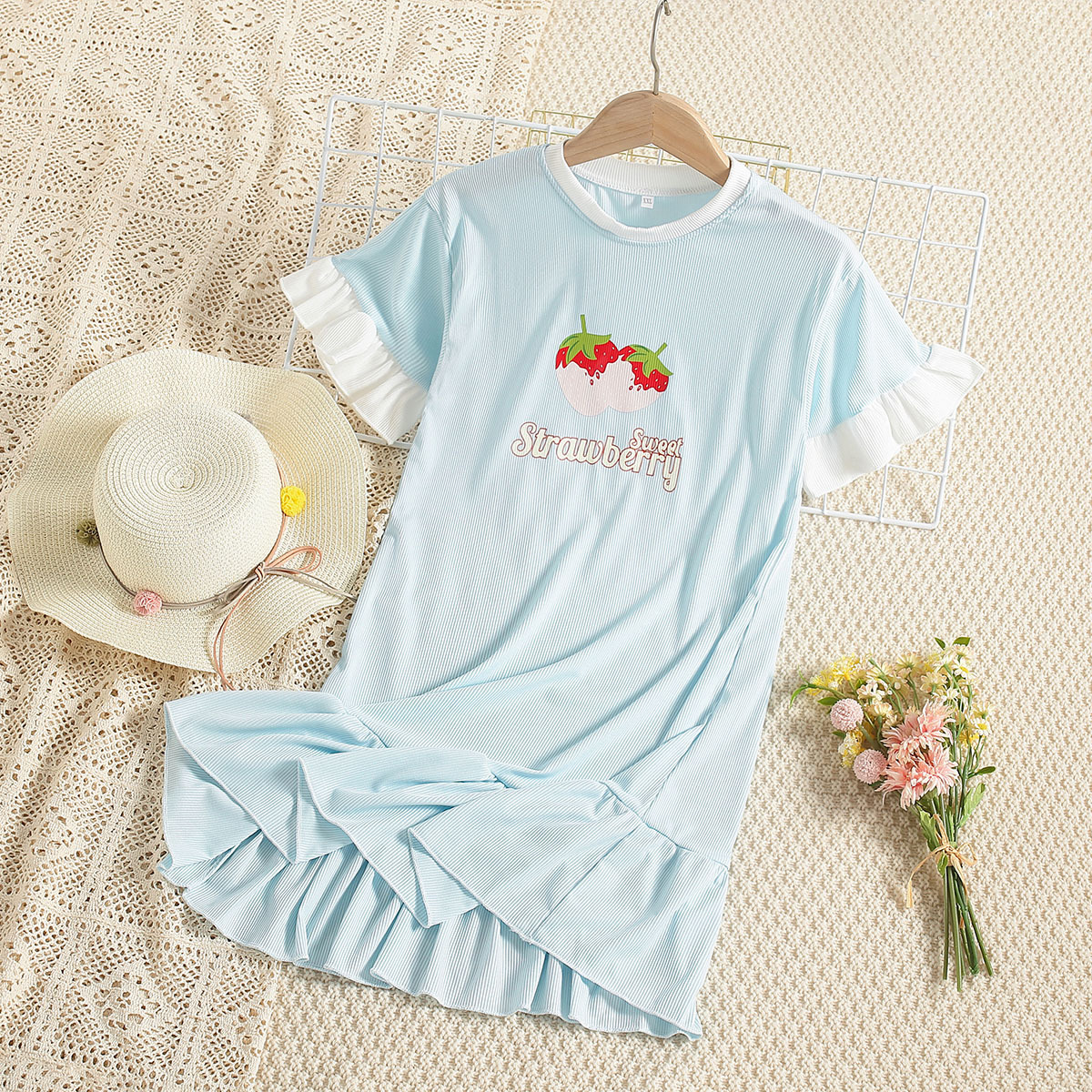 Girls Summer Thin Print Princess Loungewear Nightdress Wholesale