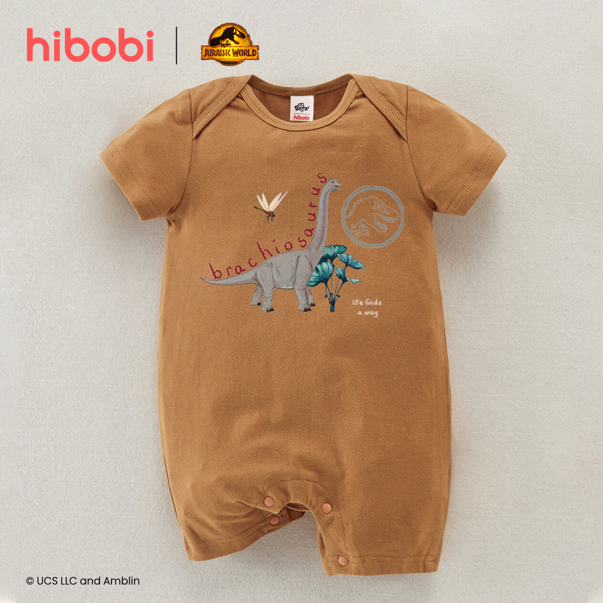 hibobi×Jurassic Baby Boy Cartoon Print Short Sleeve Cotton Jumpsuit Wholesale