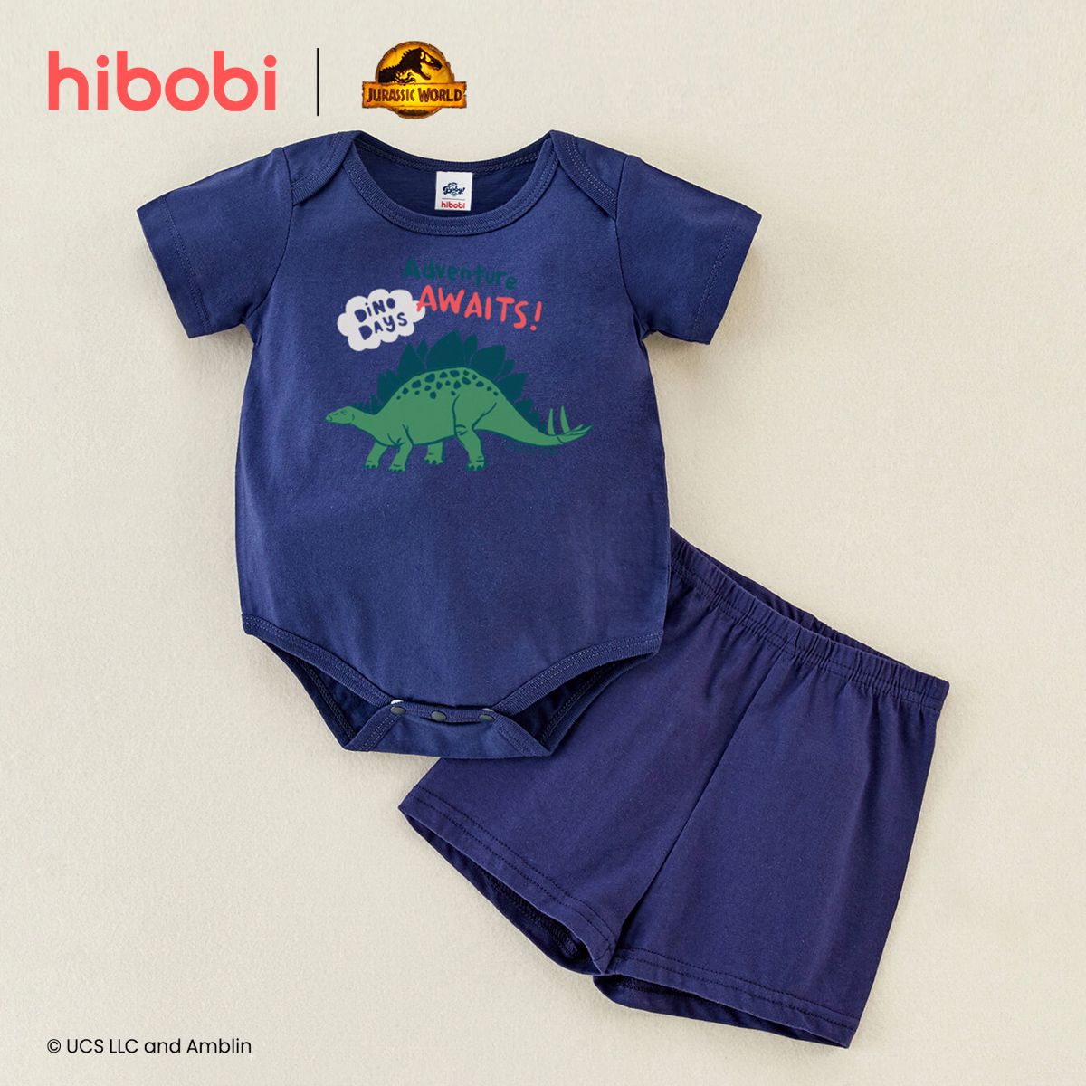 hibobi×Jurassic Baby Boy Cartoon Print Short Sleeve Cotton Jumpsuit&Shorts Wholesale