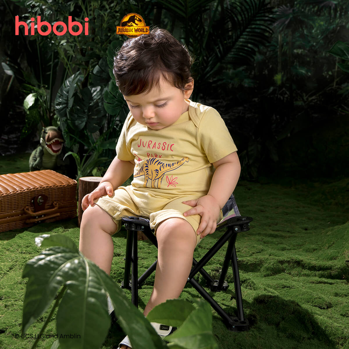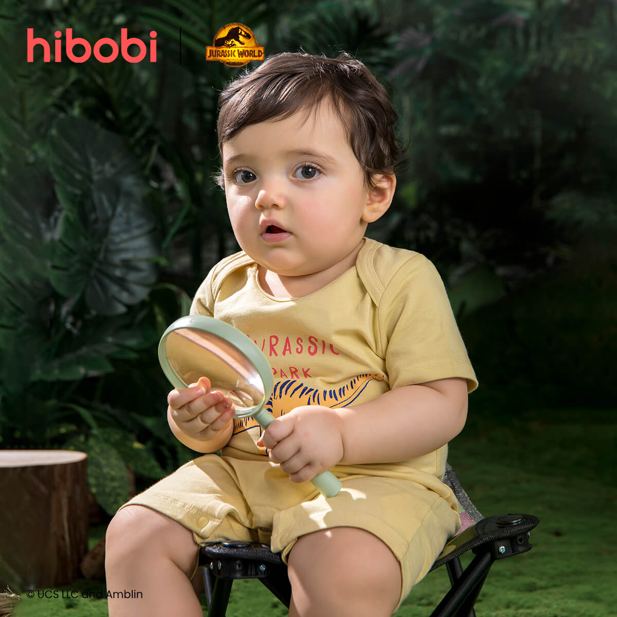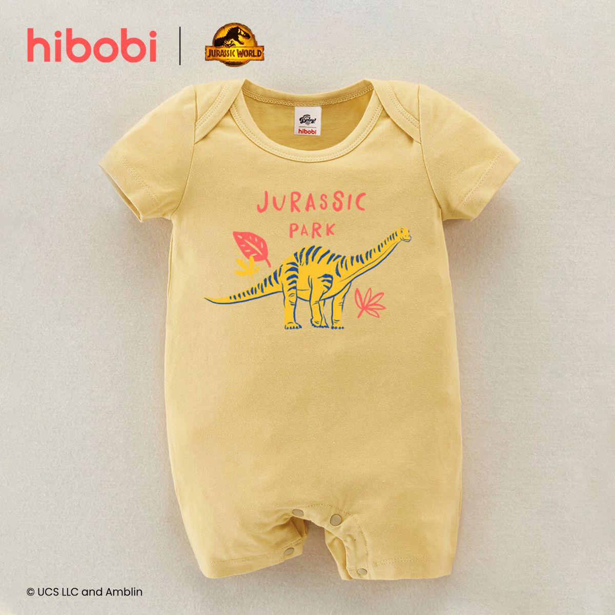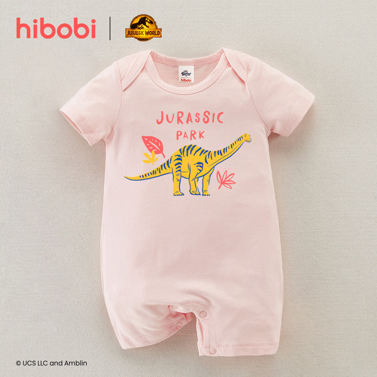 hibobi×Jurassic Baby Girl Cartoon Print Short Sleeve Cotton Jumpsuit Wholesale