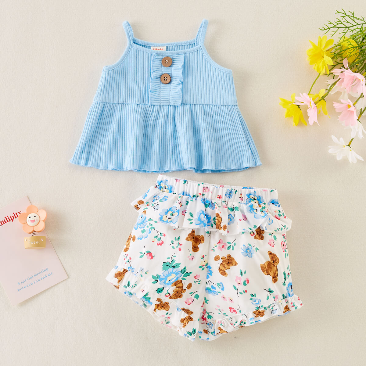 hibobi Baby Girl Fresh Floral Print RuffleTop and Shorts Wholesale