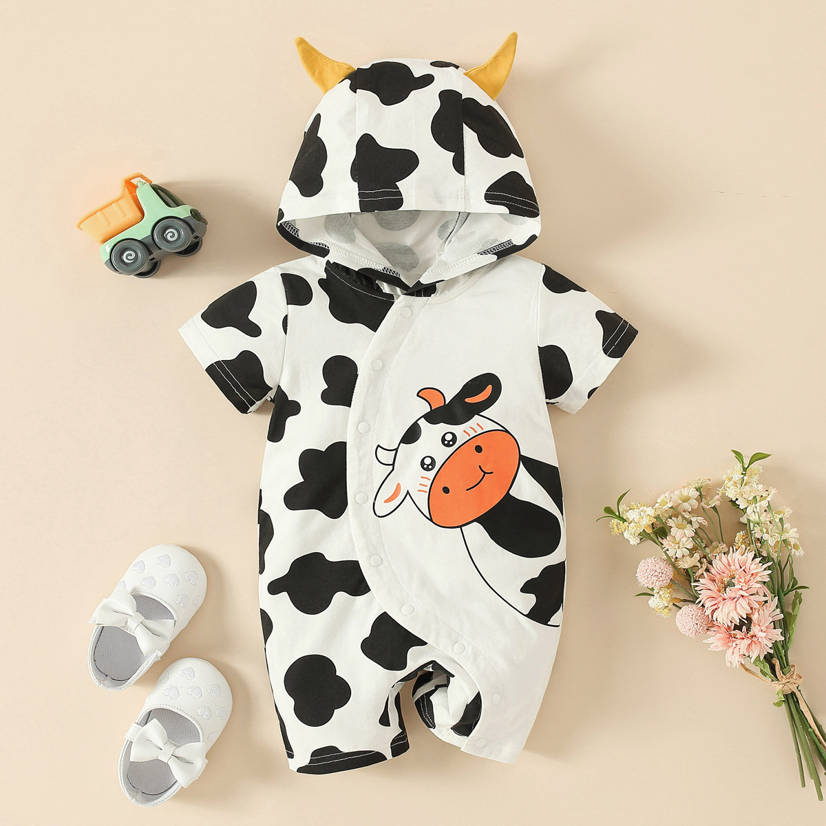 hibobi Boy Baby Cow Print Short-sleeved Hooded Bodysuit Wholesale