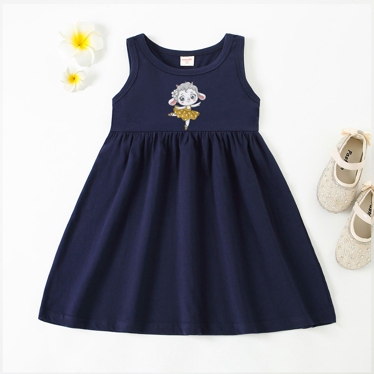 Toddler Girl Baby Basic Dancing Sheep Print Sleeveless Dress Wholesale