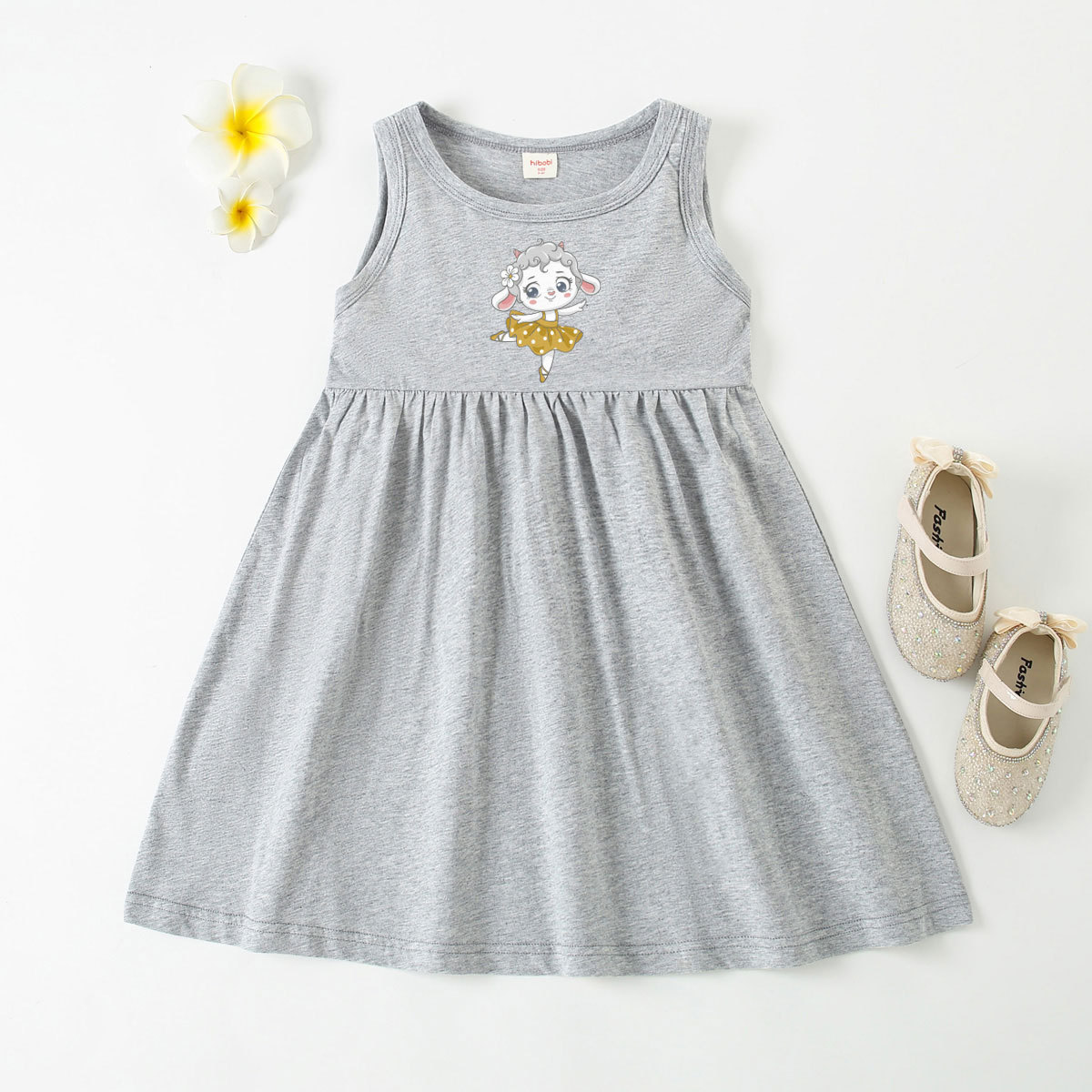 Toddler Girl Baby Basic Dancing Sheep Print Sleeveless Dress Wholesale