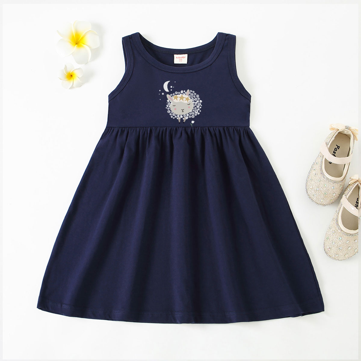 Toddler Girl Baby Basic Petal Sheep Print Sleeveless Dress Wholesale