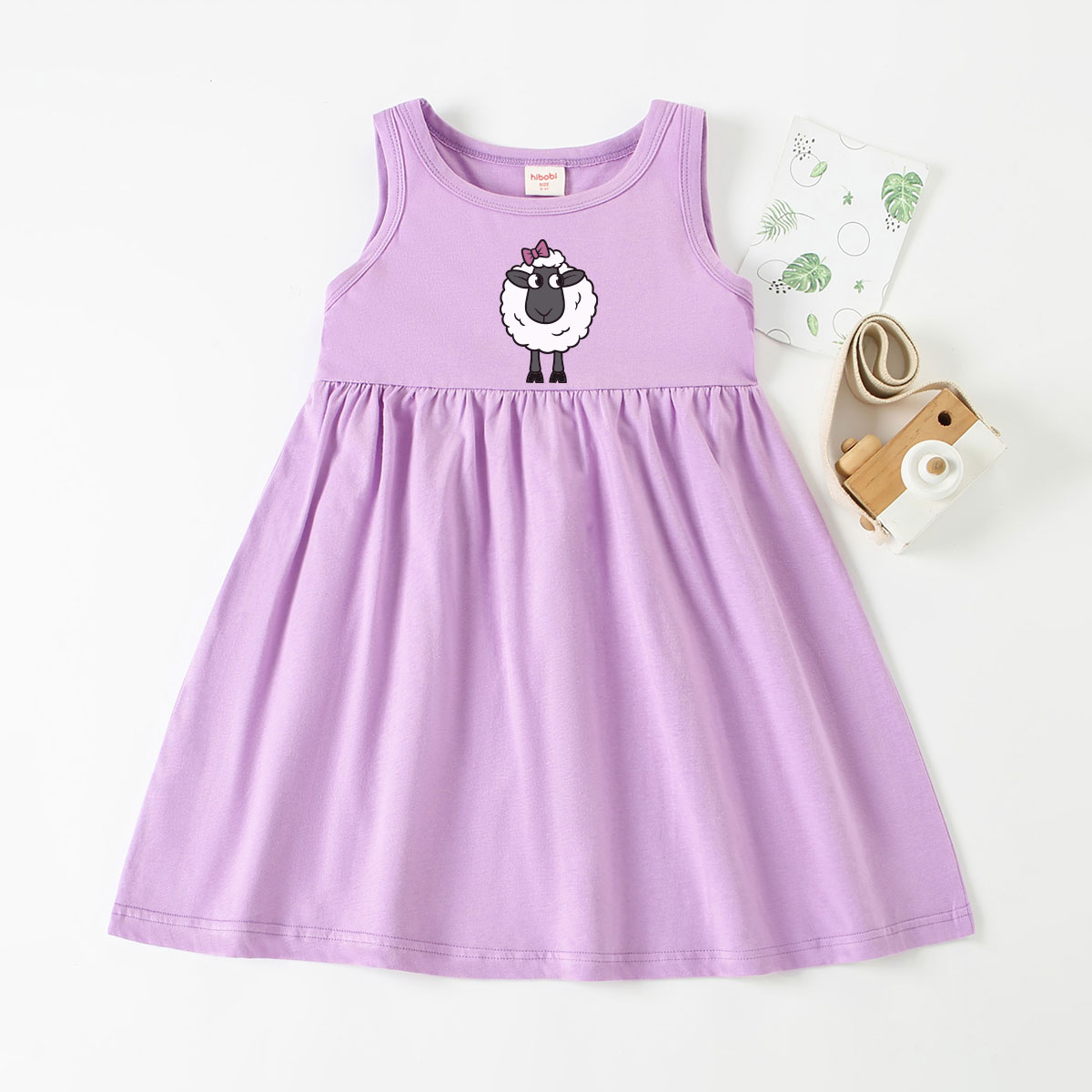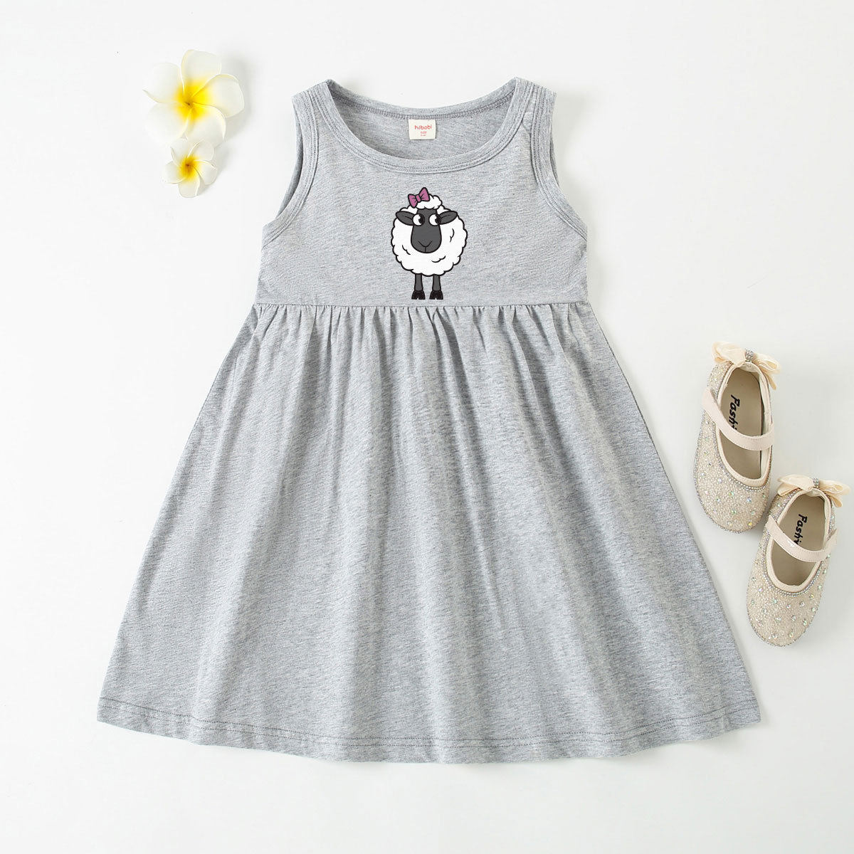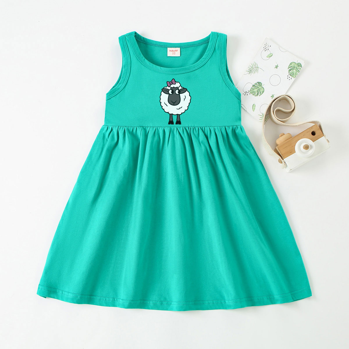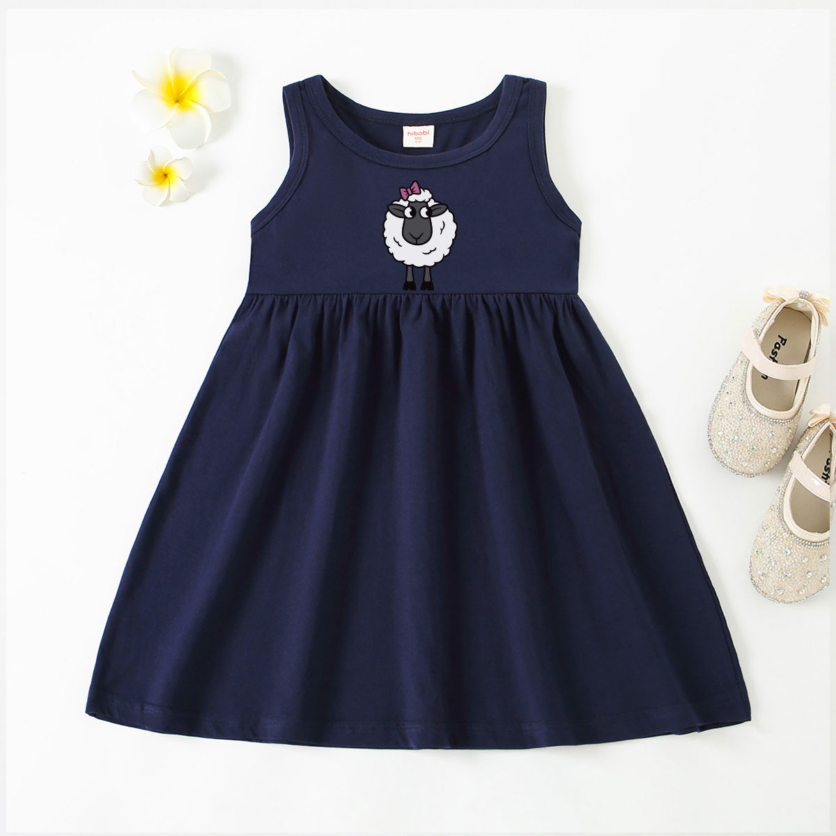 Toddler Girl Baby Basic Sheep With Bows Print Sleeveless Dress Wholesale