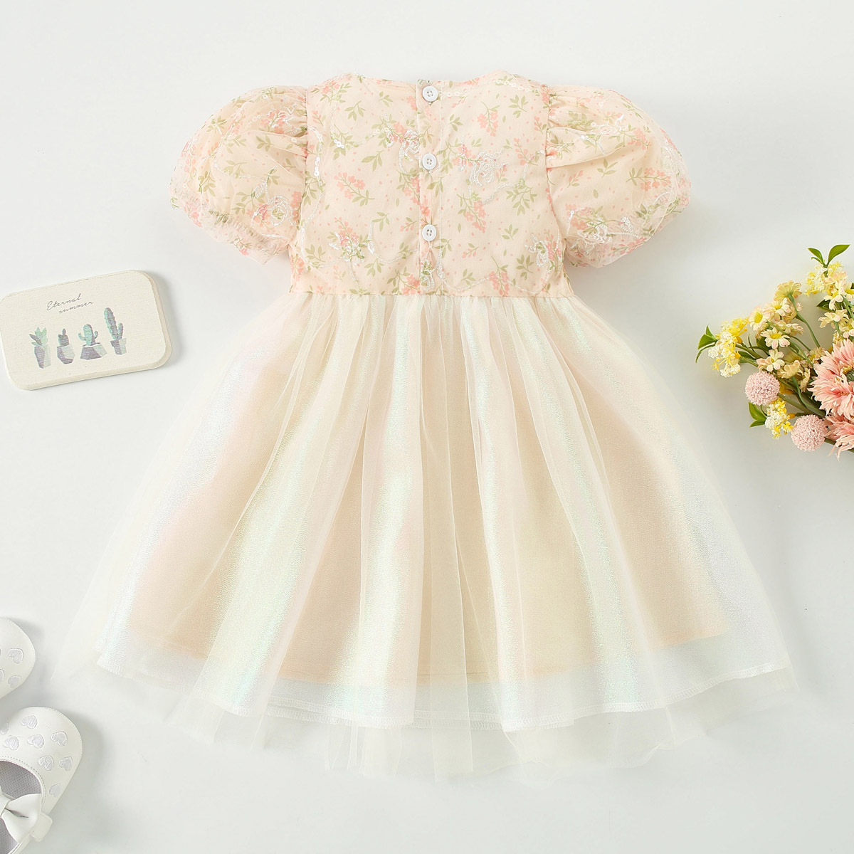 hibobi Girl Baby Elegant Sweet Mesh Botanical Print Dress Wholesale