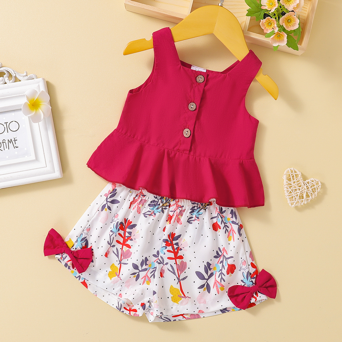 hibobi Girl Baby Halter Sweet Floral Bow Set Wholesale
