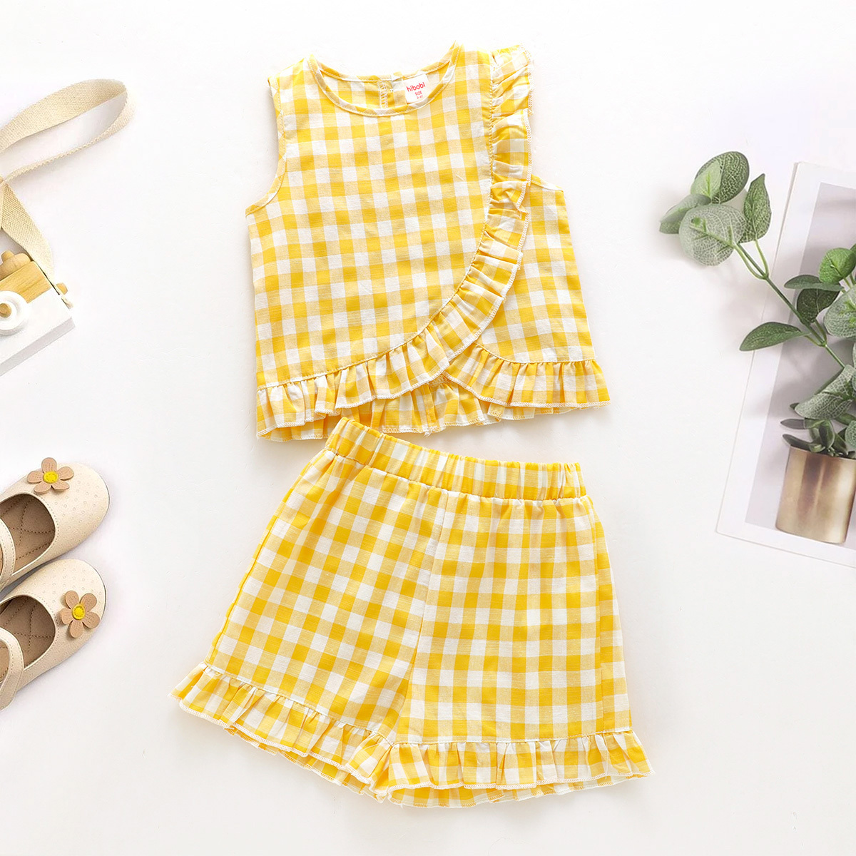 Toddler Girl Baby Yellow Plaid Sleeveless Suit Wholesale