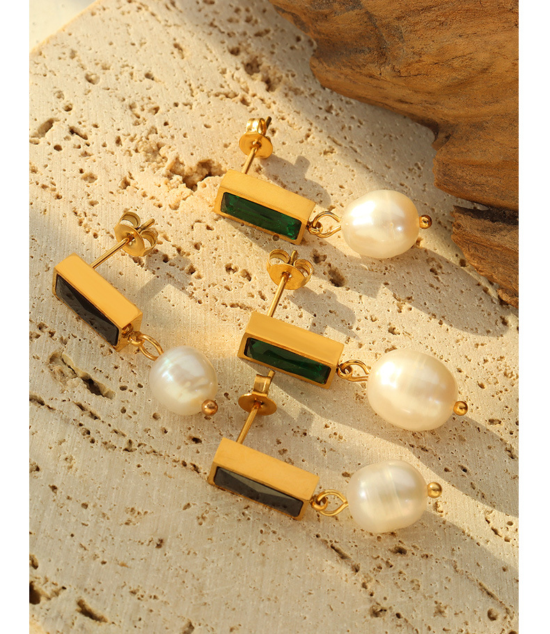 Inlaid Gemstone With Pearl Earings