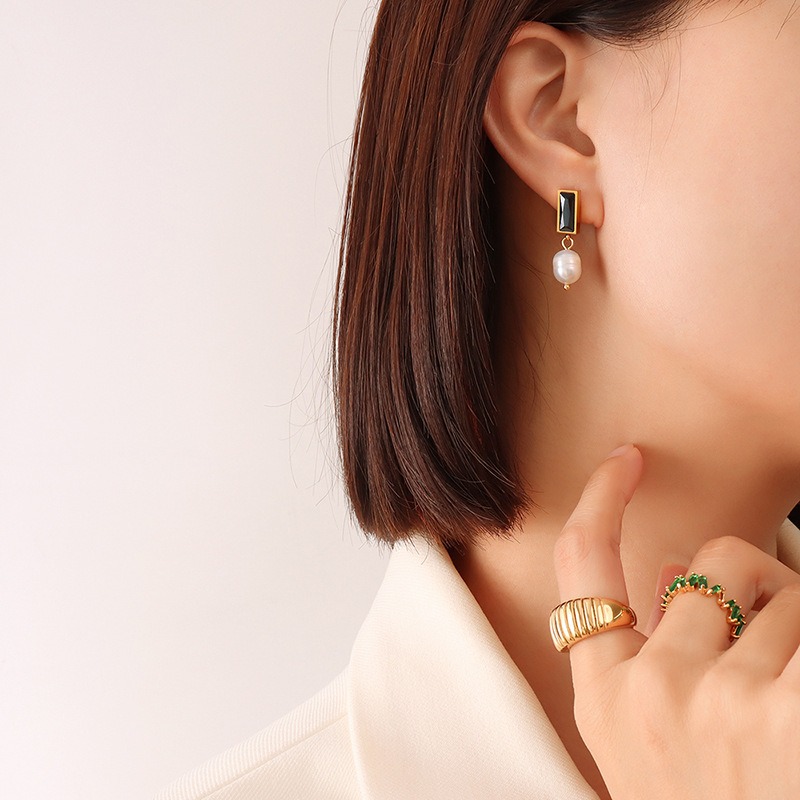 Dainty pearl with gemstone, gives some vintage taste! A perfect match up indeed! Spice up your daily outfit!