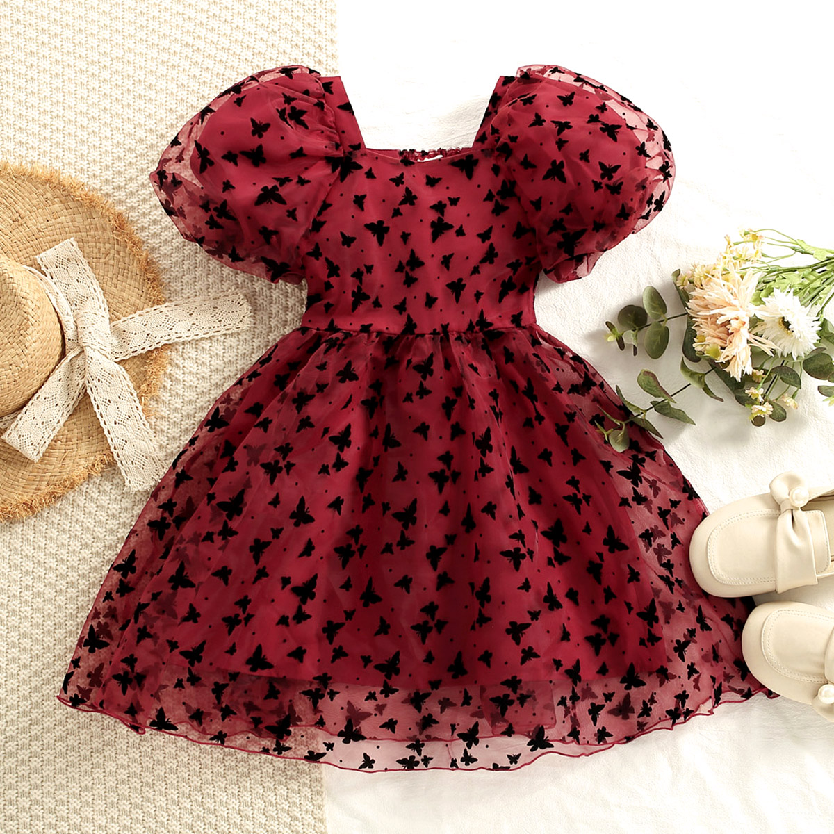 Kid Girl Butterfly Print Mesh Dress Wholesale