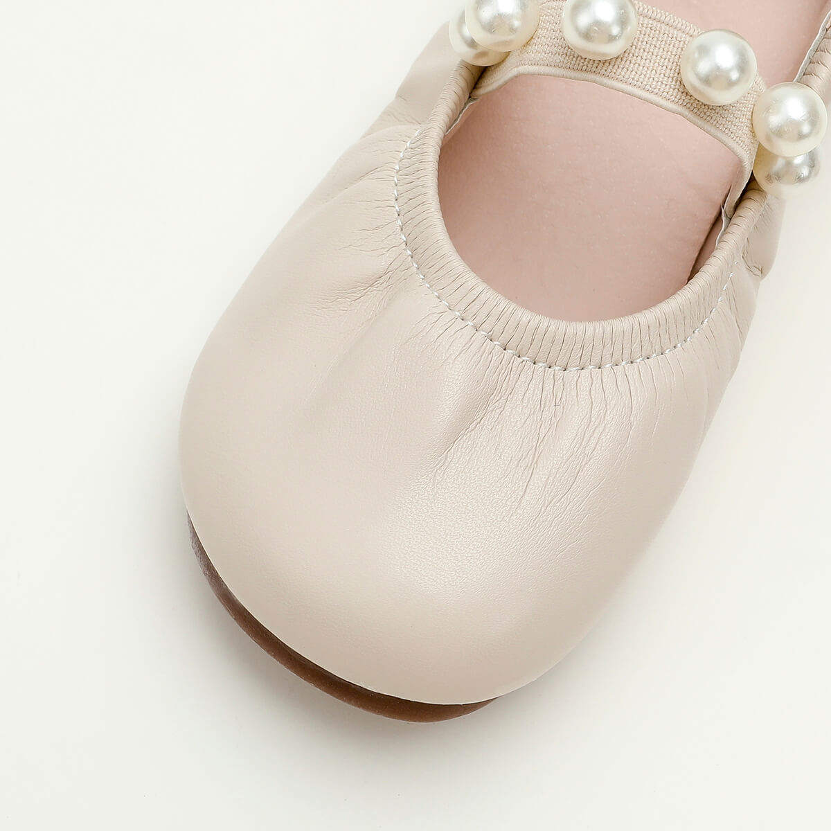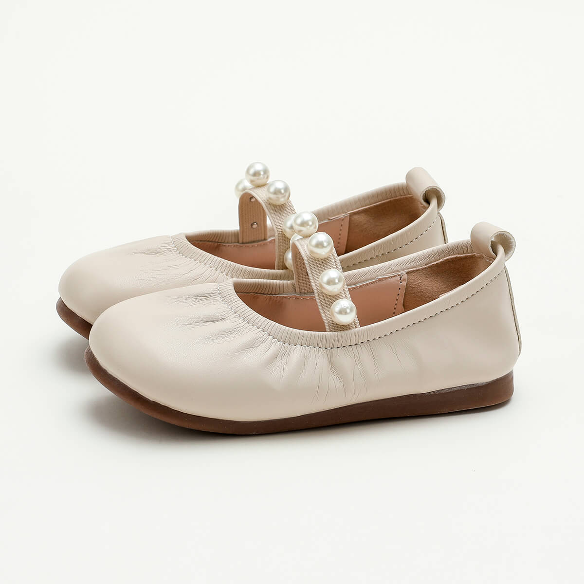 Kid Girl Solid Color Pearl Decoration Leather Shoes Wholesale