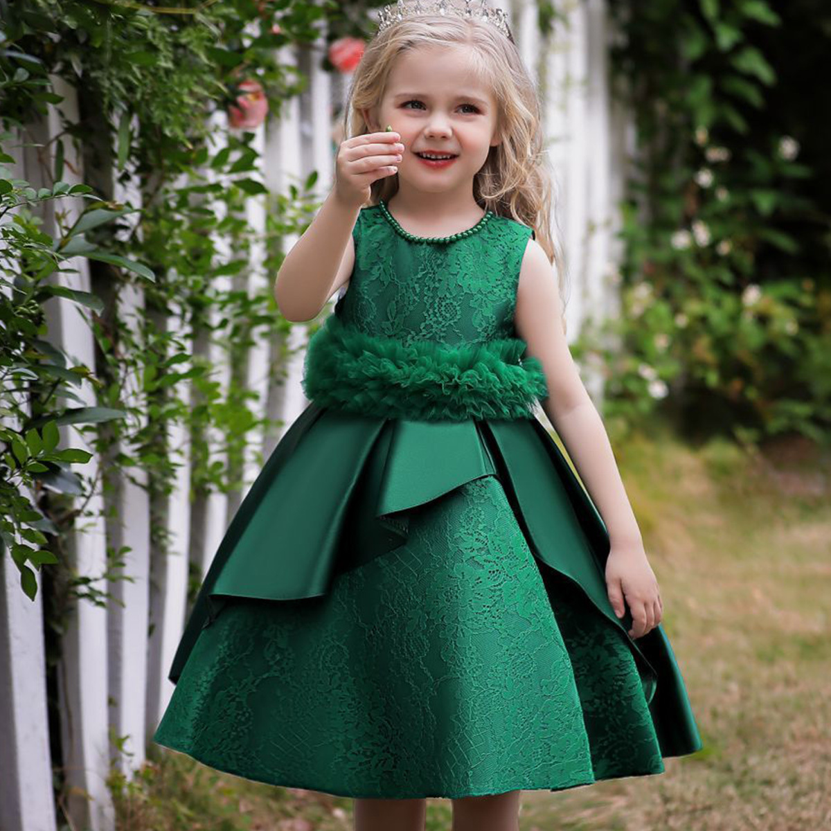 Kids Girls Bowknot Mesh Patchwork Decorative Beads Catwalk Princess Dress Wholesale