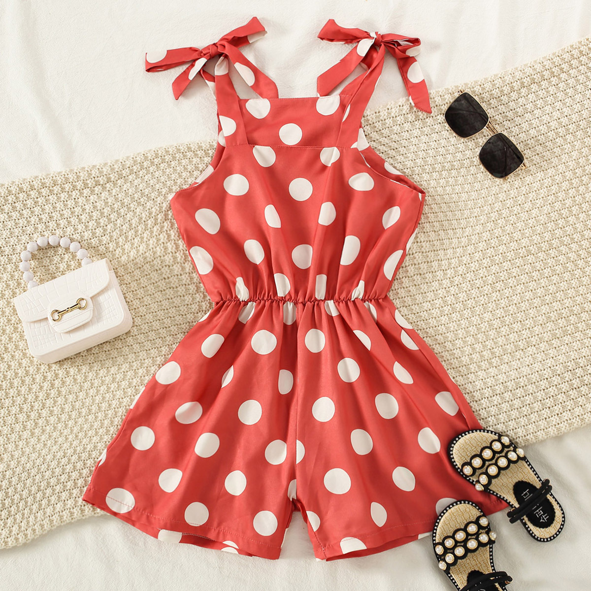 Kids Girls Dot Print Tie Jumpsuits Wholesale