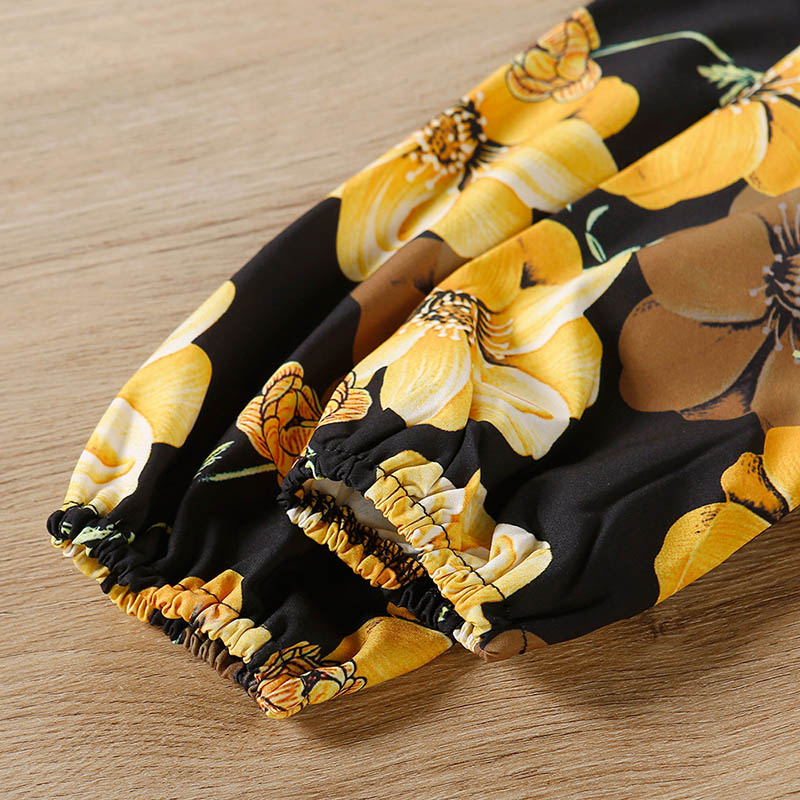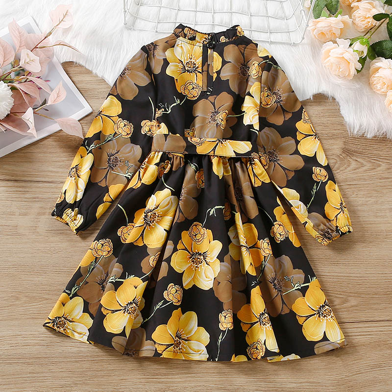 Kids Girls Floral Print Frilled Neck Lantern Sleeve Tie Dress Wholesale