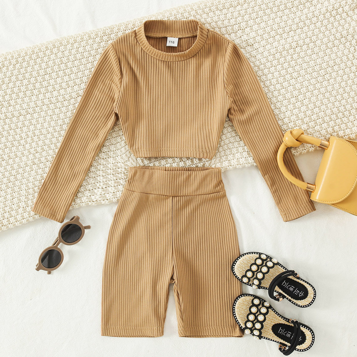 Kids Girls Solid T-shirt & Shorts Set Wholesale